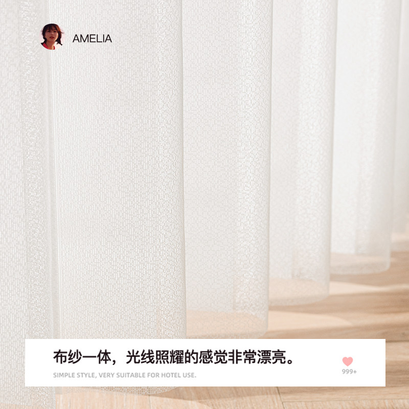 淘窗帘纱帘透光不透人o阳台卧w室飘窗免打孔防勾丝客厅隔断梦幻白纱