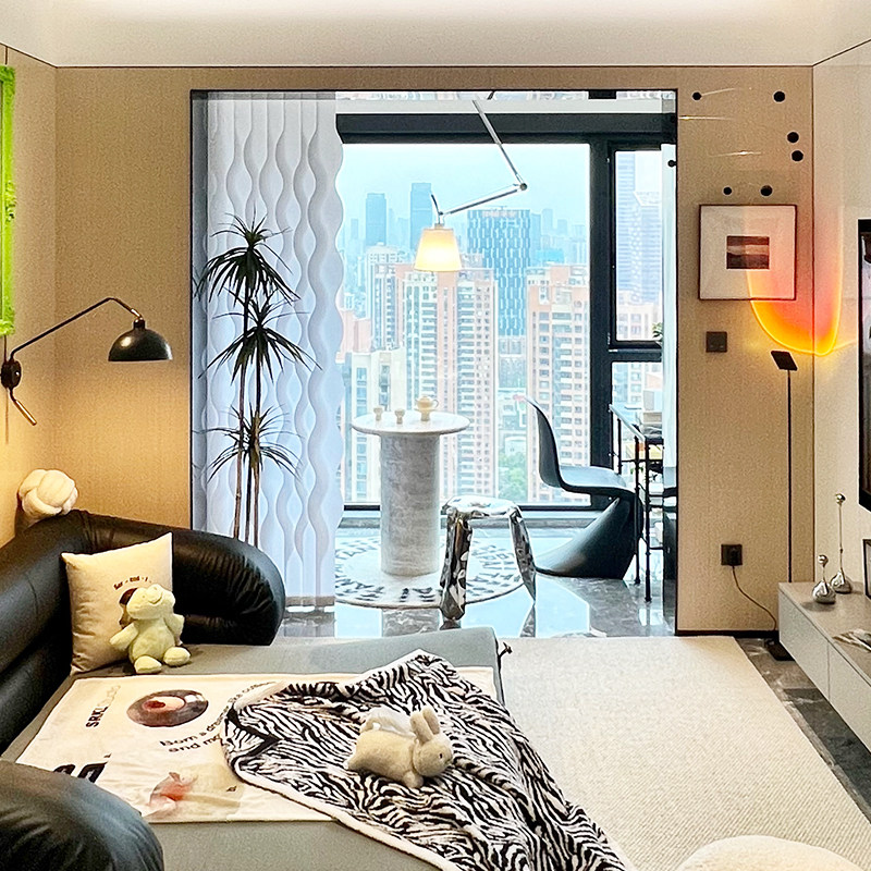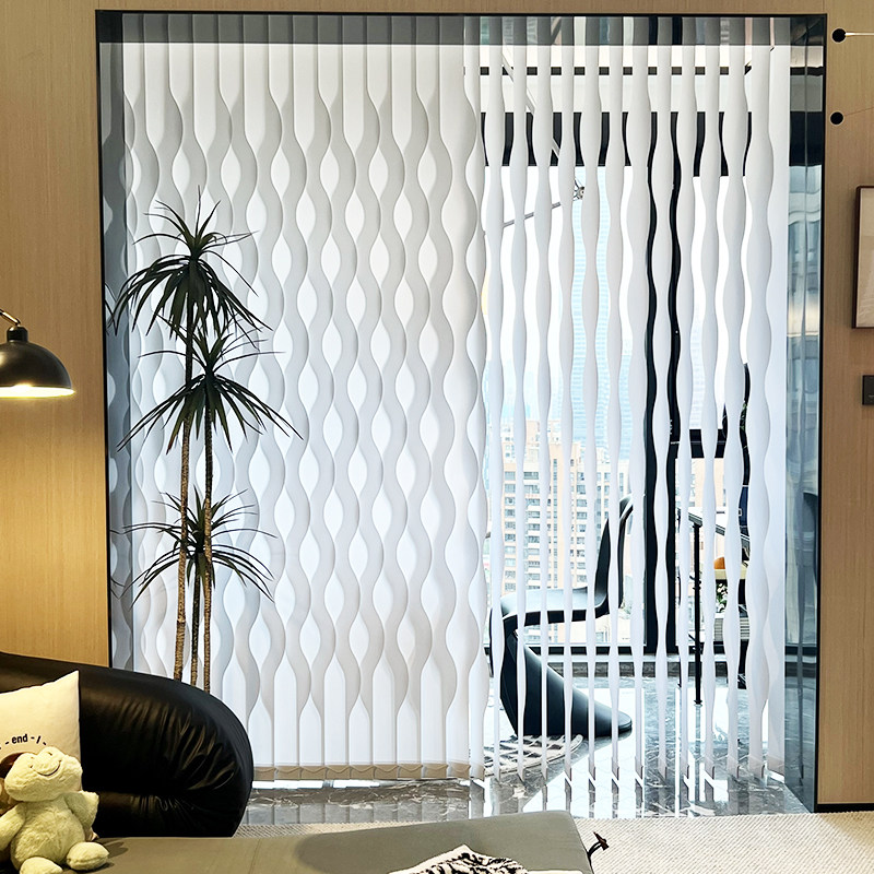 高端梦幻帘竖百叶窗帘,融合现代简约与艺术美学,专为客厅落地窗打造。采用优质柔光面料,呈现细腻水波纹理,光线透过时形成柔和瀑布般光影效果,营造梦幻氛围。手动操作顺滑静音,可自由调节遮光与隐私度。垂直设计拉伸视觉空间,轻盈飘逸,宛如流动的艺术品,被誉为“网红瀑布帘”。适用于现代、轻奢、北欧等多种装修风格,既实用又极具装饰性,让家居空间瞬间提升格调与品味,是追求品质生活人士的理想之选。