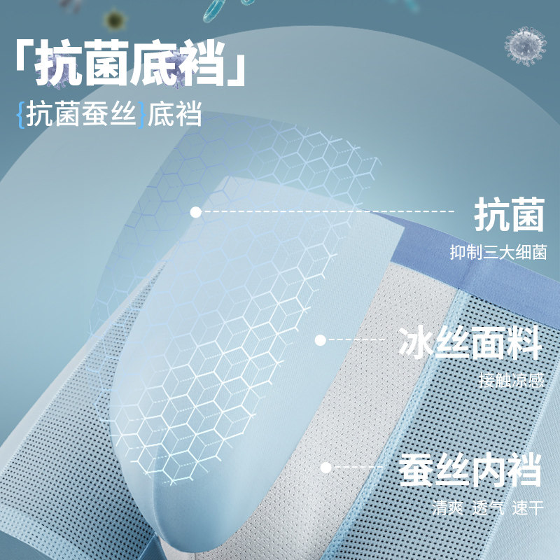 天猫樱姿娜冰丝男士内裤薄款蚕丝抗菌裆无痕空调透气四角平角裤短裤头