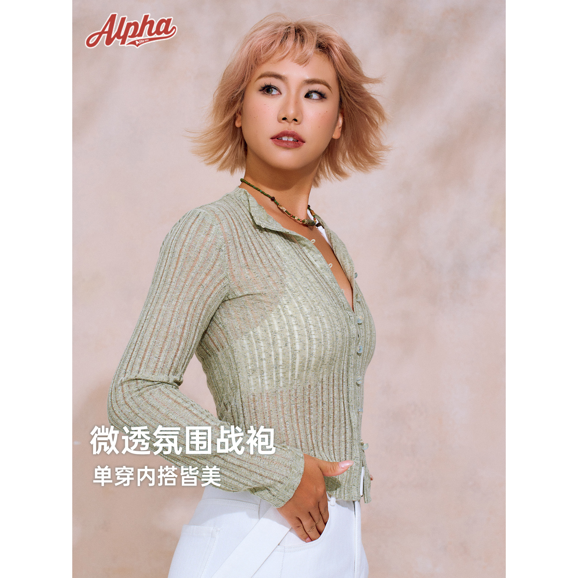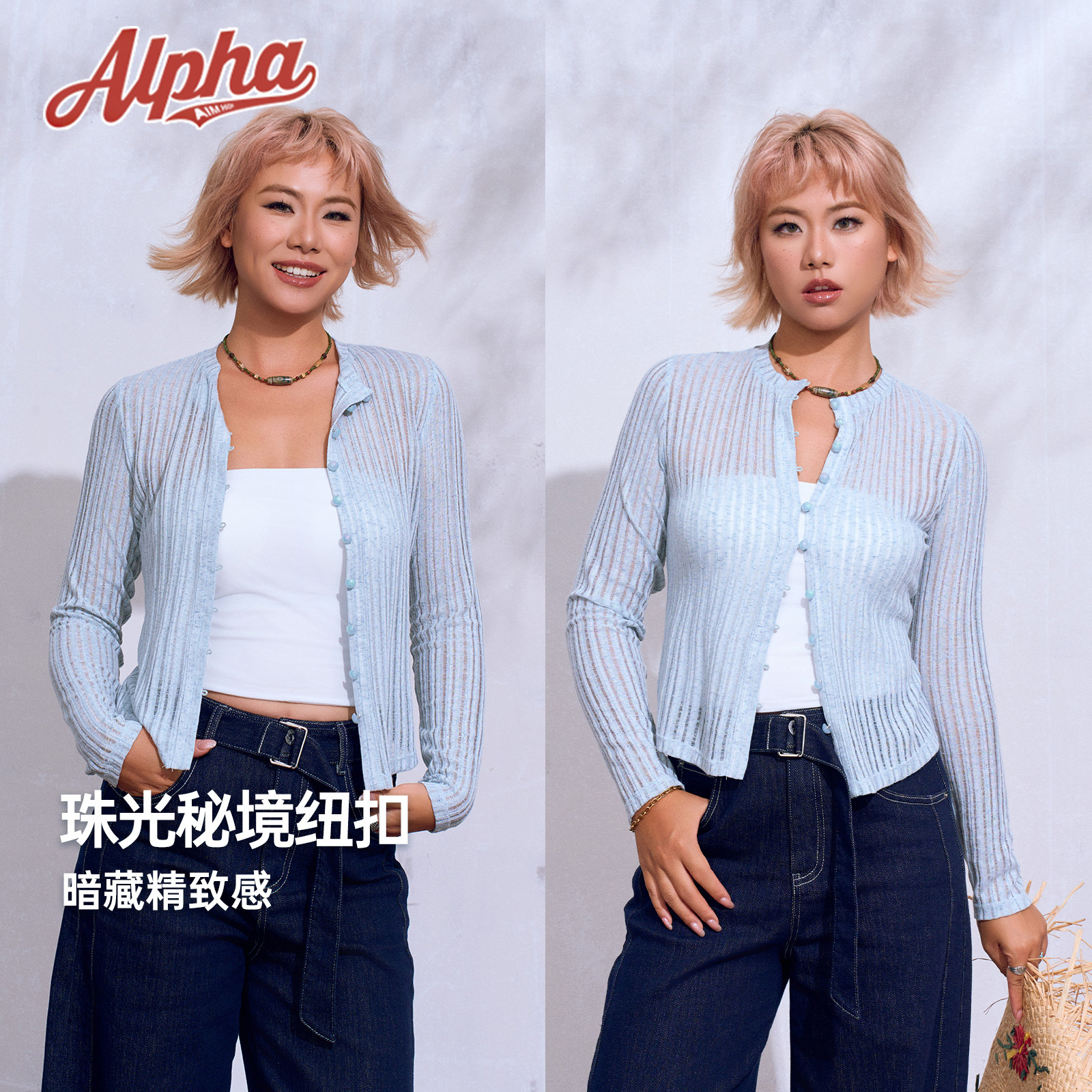 AlphaGym蝉翼云柔0压裸感镂空空调衫,采用超细纤维针织工艺,轻盈如云,触感柔滑,带来“零压力”贴身体验。独特的镂空纹理设计,透气清凉,宛如夏日微风拂面,特别适合空调环境或闷热天气穿着。衣身融入细腻珠光质感,低调中透出高级光泽,搭配精致蘑菇扣点缀,增添几分俏皮与优雅。宽松版型剪裁,不挑身材,轻松打造慵懒随性风格。无论是搭配吊带、T恤,还是作为外披,都能展现女性柔美与时尚态度。这款针织开衫集舒适、颜值与实穿性于一体,是都市女性夏日衣橱的必备单品。
