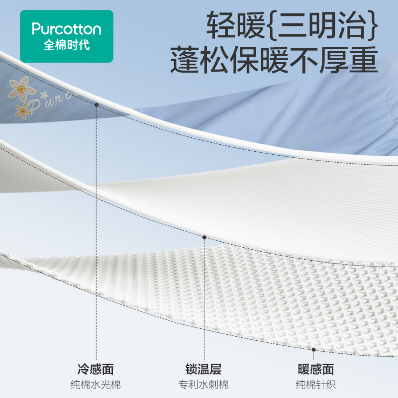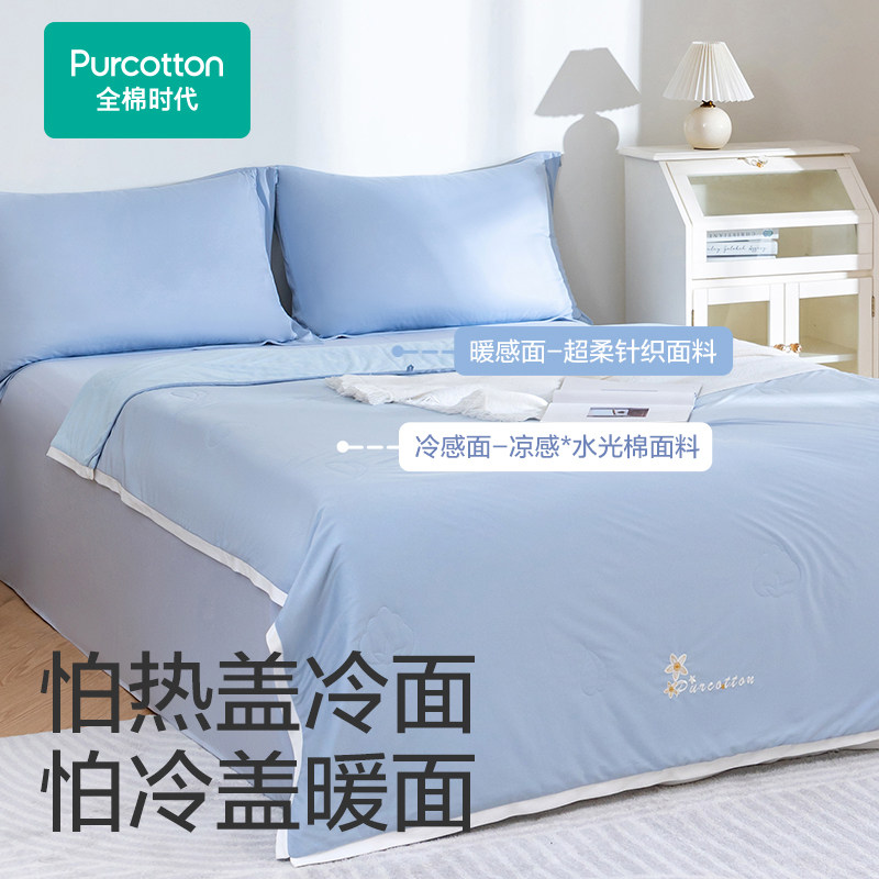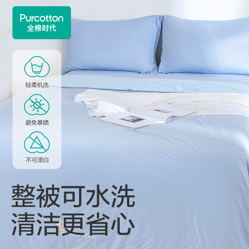 天猫全棉时代被子夏凉被空调被棉花被纯棉针织拼水光棉双面被可水洗