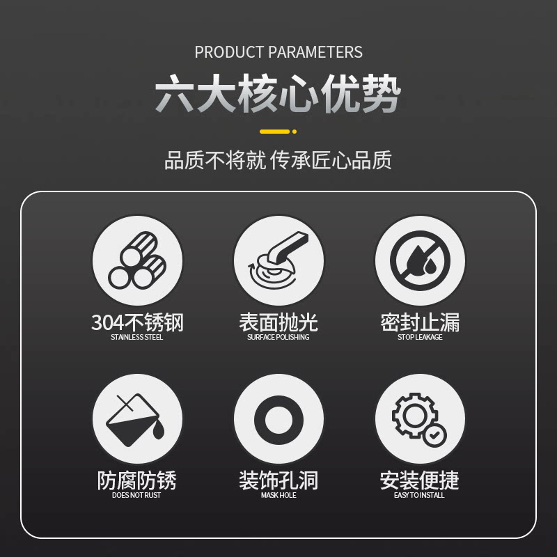 304不锈钢空调孔装饰盖是一款兼具实用性与美观性的墙面封堵配件,专为遮盖空调安装后遗留的墙洞、管道缝隙而设计。采用优质304不锈钢材质,具备出色的防锈、耐腐蚀和抗老化性能,适用于室内外多种环境。其结构紧密,可有效防尘、防水、防虫,同时提升整体装修美观度。产品安装简便,适配多种管径,广泛应用于空调排水管、穿墙管线等洞口封堵。兼具遮丑与防护功能,是家庭、办公室及商业场所的理想补洞解决方案,既解决洞口裸露问题,又延长墙体使用寿命,是现代装修中不可或缺的实用配件。