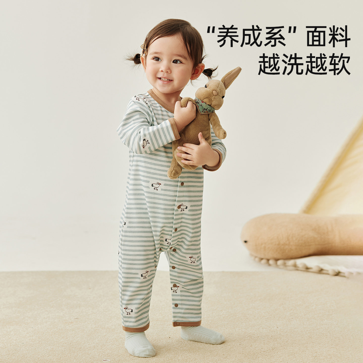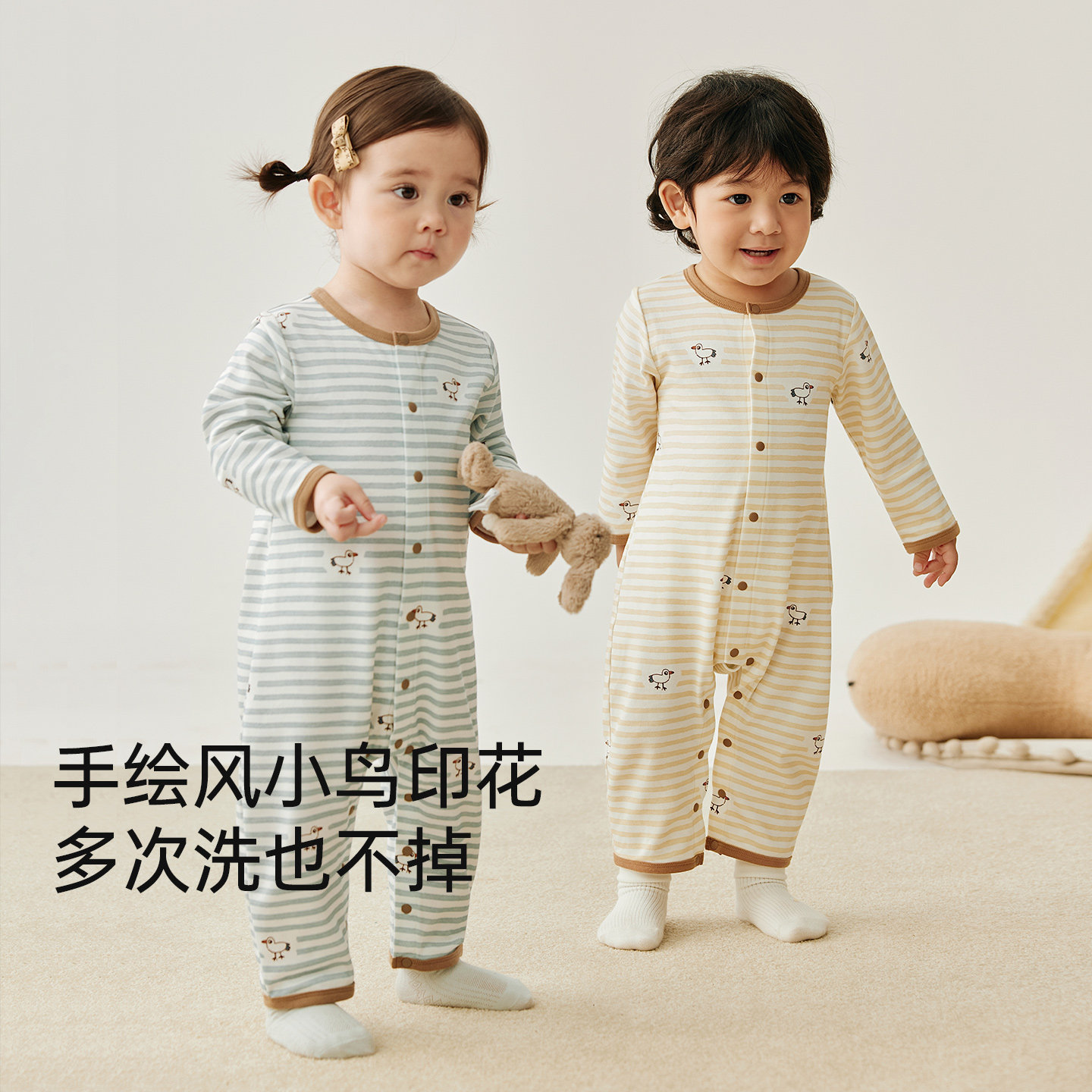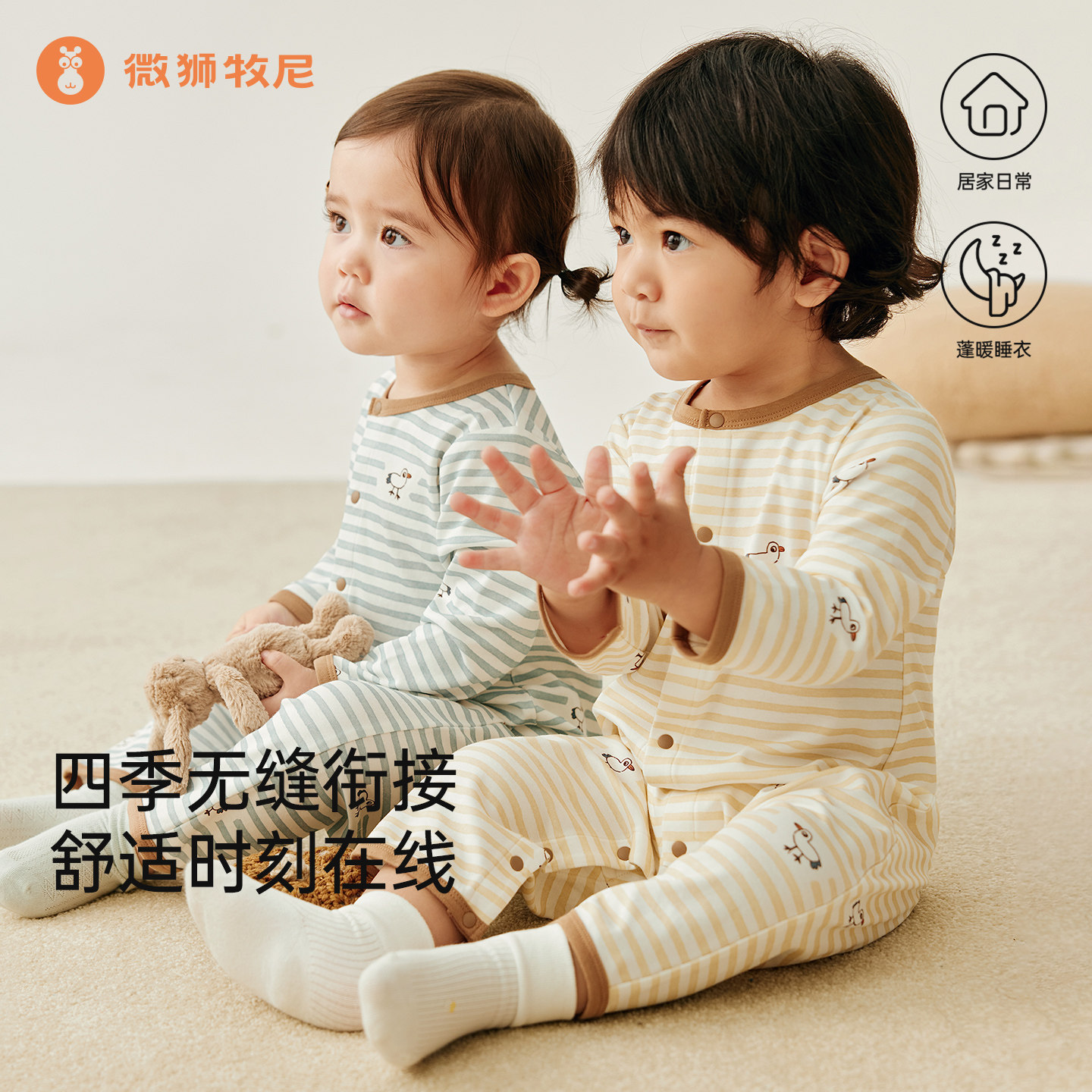 天猫微狮牧尼婴儿长袖连体衣春夏宝宝春天衣服洋气外出服条纹空调服夏