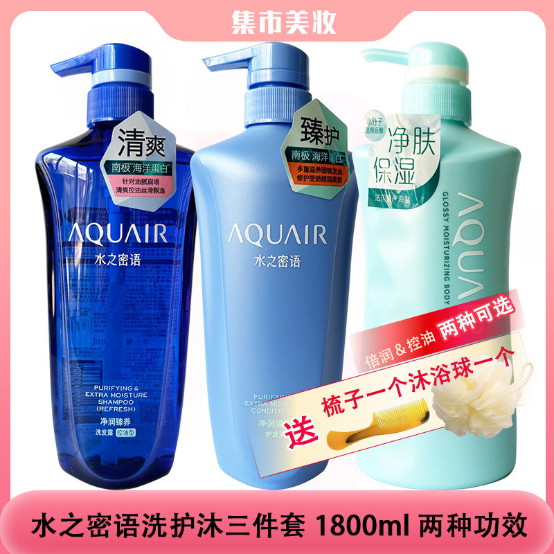 水之密语净润臻养三件套(洗发水+护发素+沐浴露)1800ml大容量组合,专为干燥缺水发质与肌肤设计。蕴含海洋精华与透明质酸,深层滋养,有效锁水保湿,令秀发柔顺亮泽,肌肤柔滑细腻。洗发水质地丰盈,温和清洁头皮,减少毛躁;护发素深入修护受损发丝,提升弹性与光泽;沐浴露泡沫绵密,洗后不紧绷,持久留香。三效合一,满足全家洗护需求,性价比高,适合日常长期使用。水之密语以水润科技守护健康秀发与肌肤,带来SPA级沐浴体验,是居家护理的理想之选。