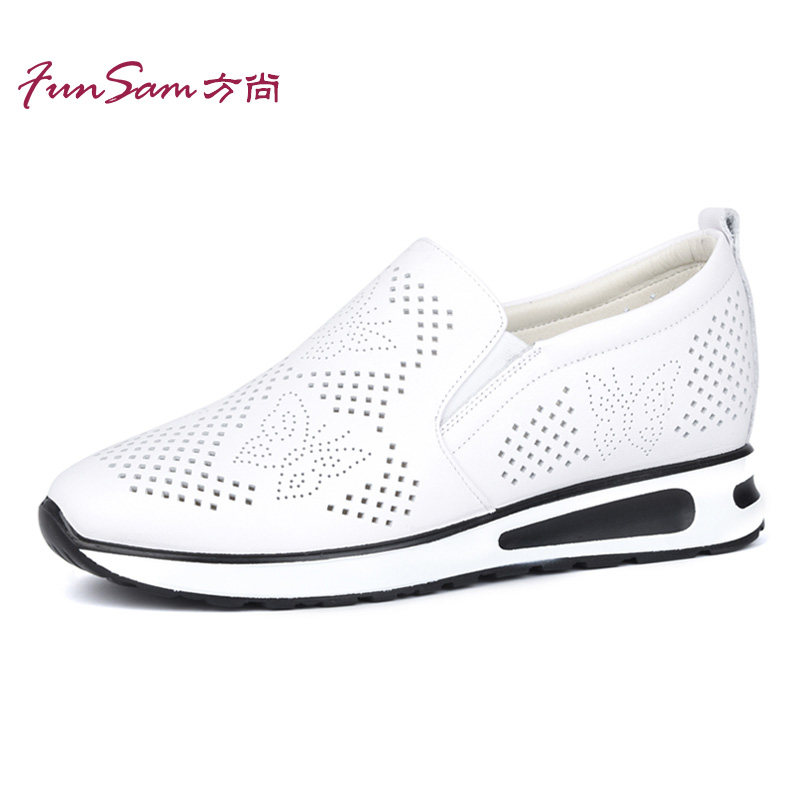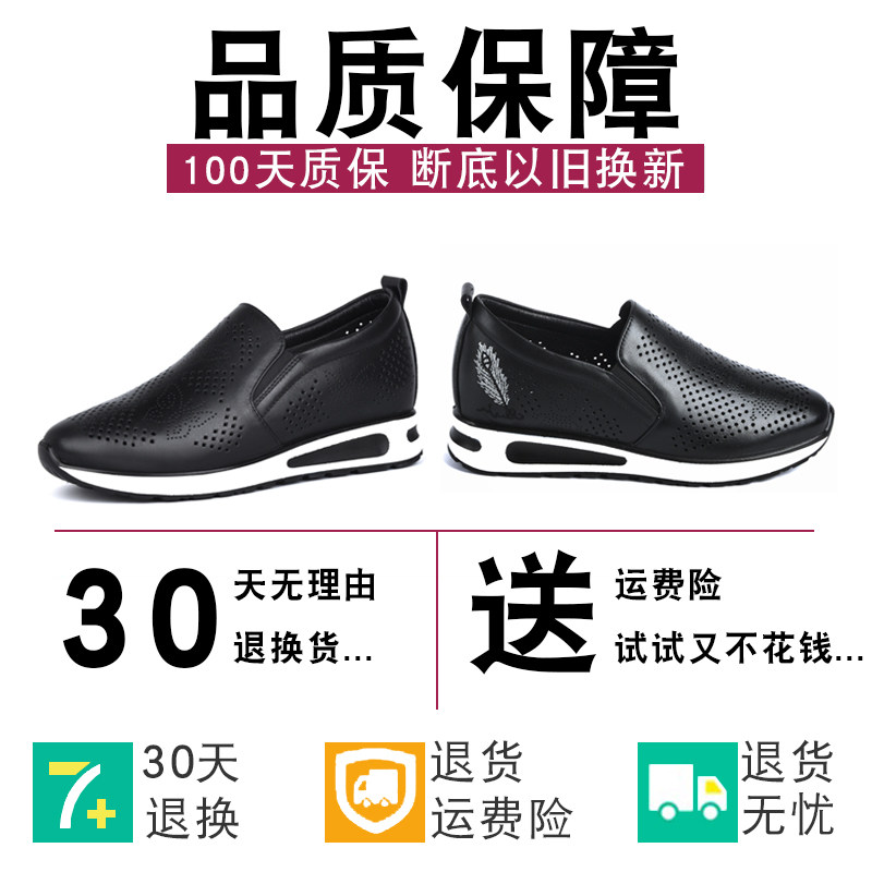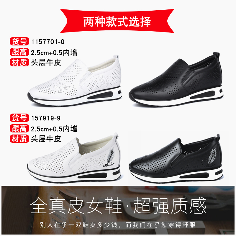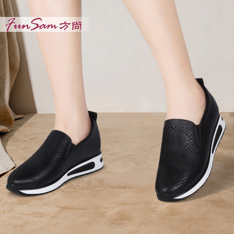 天猫方尚软皮妈妈洞洞厚底真皮四季鞋女内增高一脚蹬护士小白女鞋单鞋