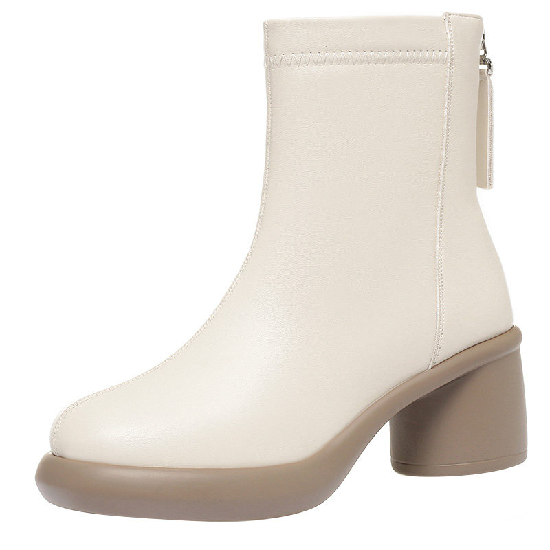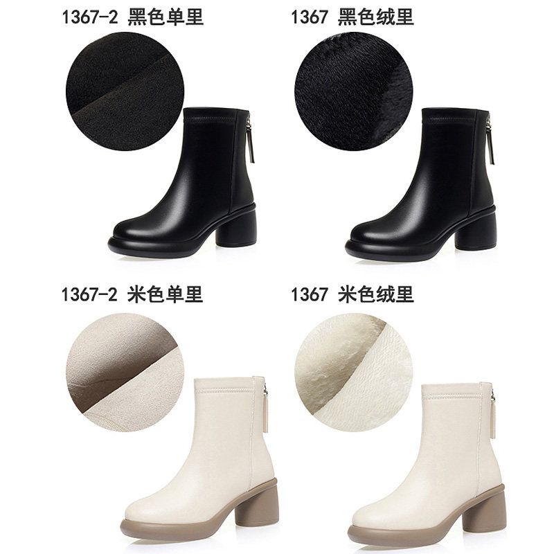 淘宝2025年秋冬新款真皮加绒短靴女粗跟鞋皮靴马丁靴白色瘦瘦靴妈妈鞋