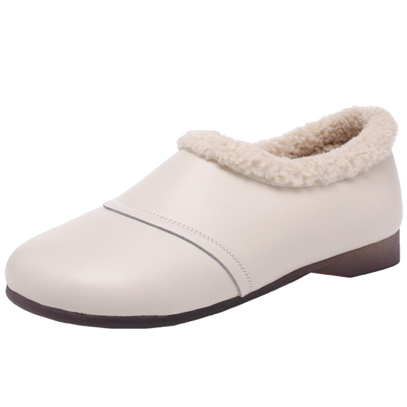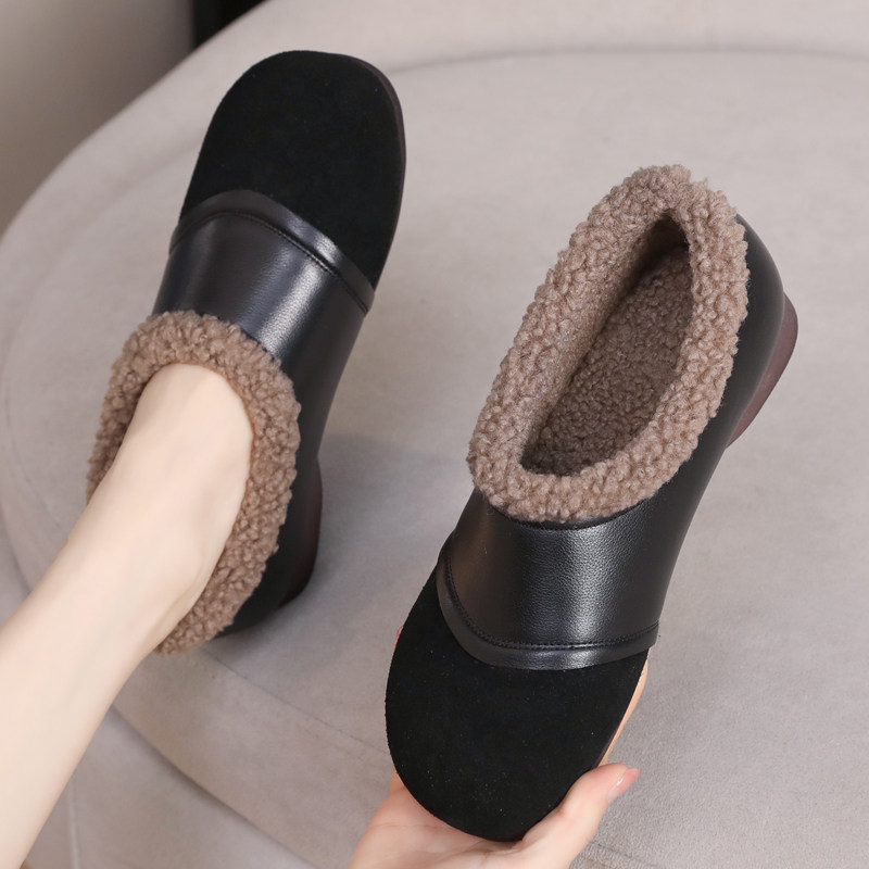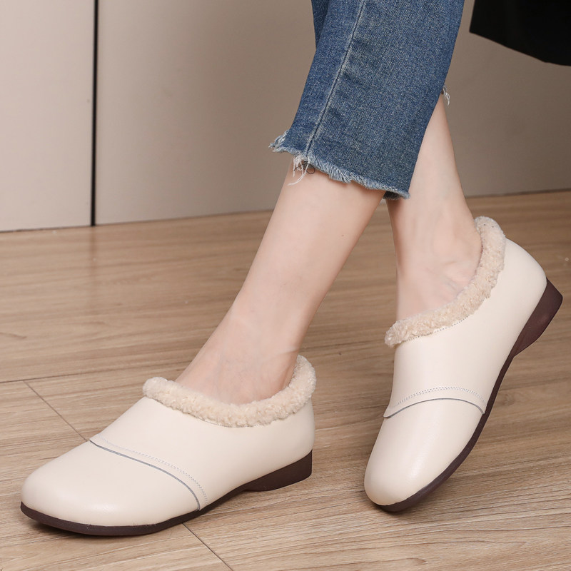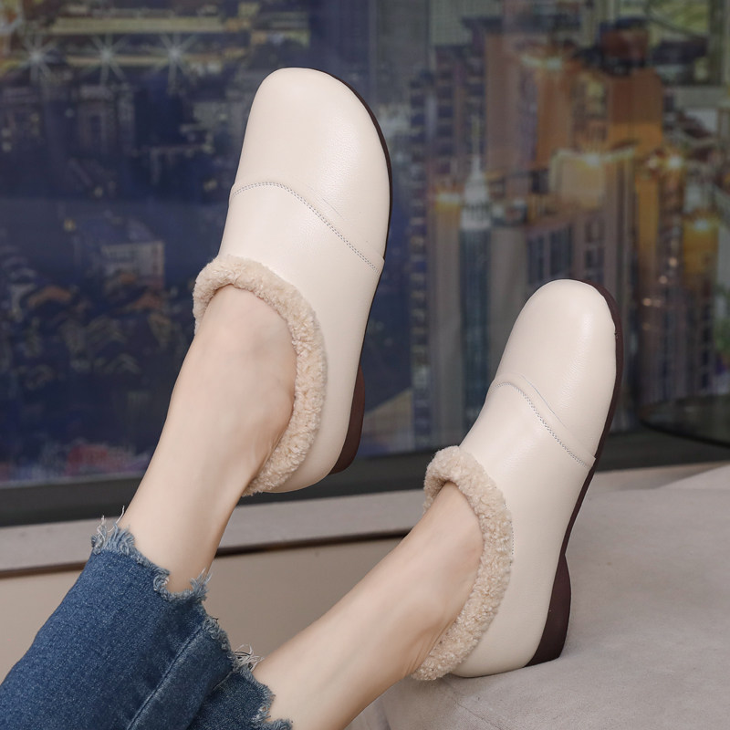 天猫真皮毛毛鞋女2025新款一脚蹬小皮鞋加绒豆豆鞋棉鞋大码妈妈鞋百搭