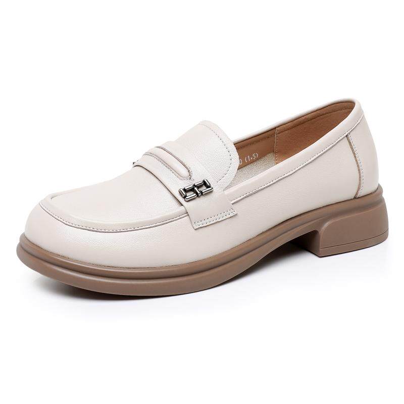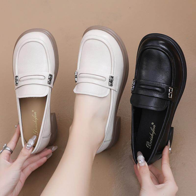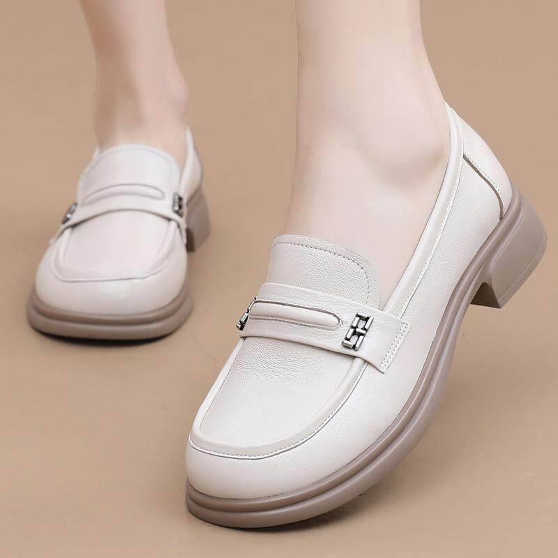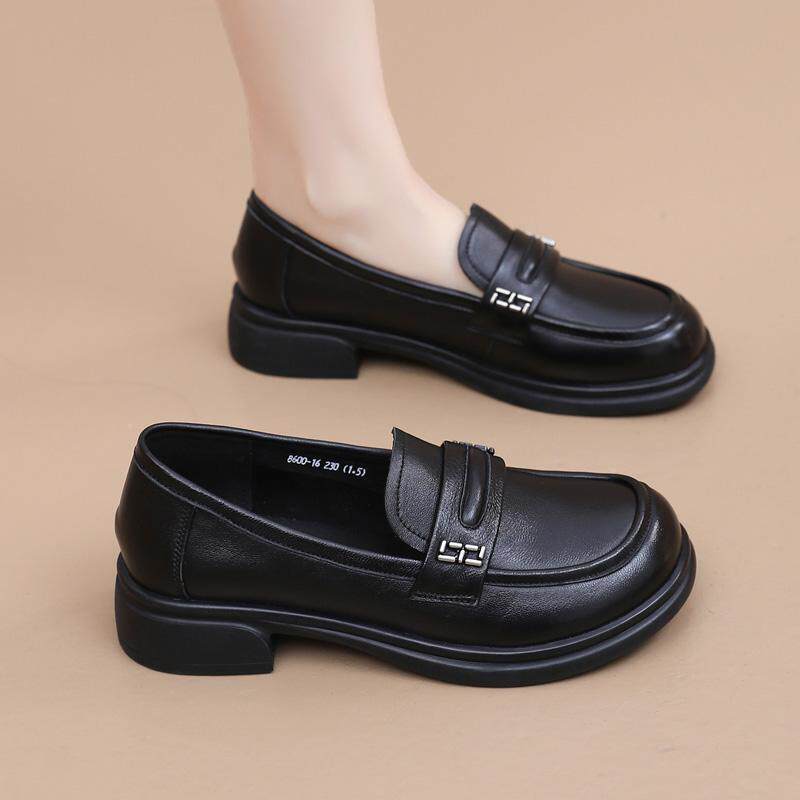 淘宝羊皮低跟单鞋春夏新款平底妈妈鞋大码中老年皮鞋舒适不累脚乐福鞋