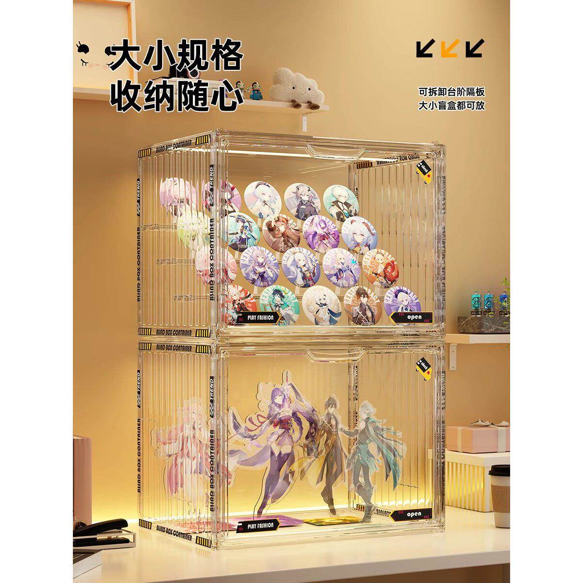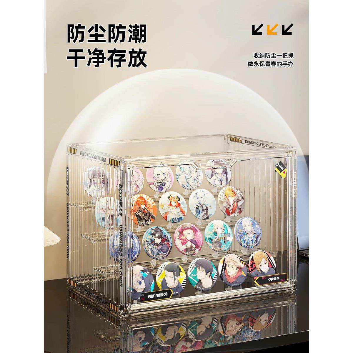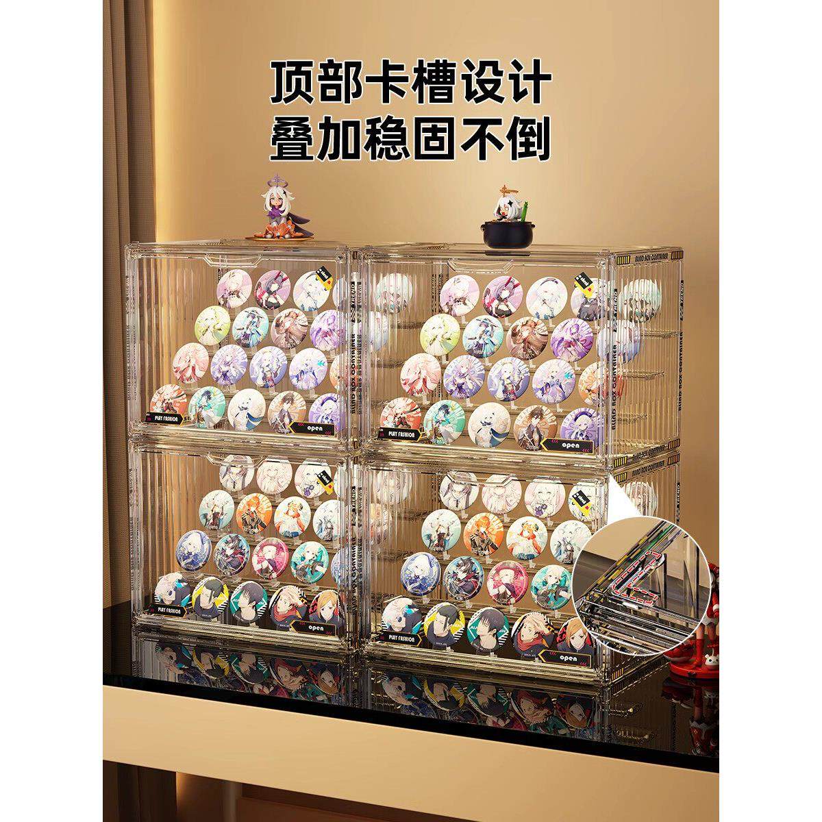 淘宝桌面吧唧收纳盒透明亚克力展示柜防尘徽章谷子动漫周边立牌展示架