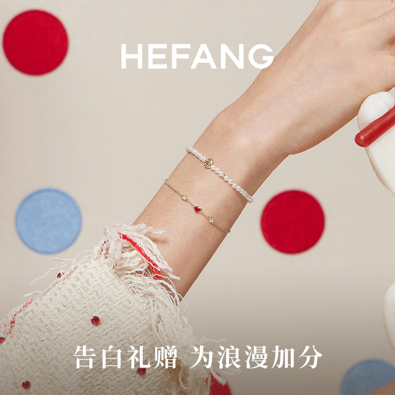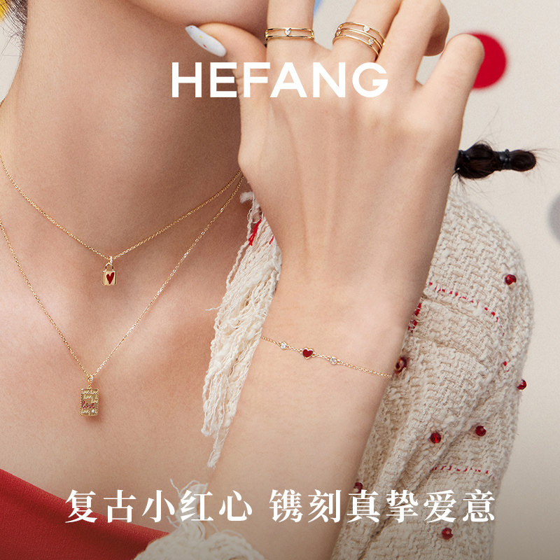 天猫HEFANG小红心K金手链14K金叠戴手环手饰品百搭饰品生日礼物