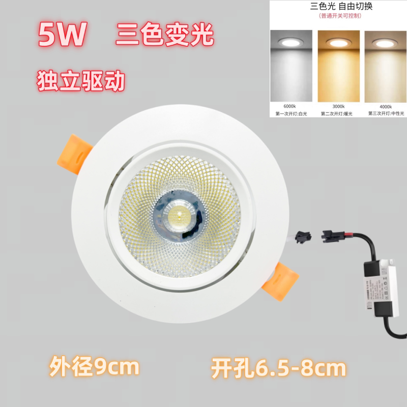 三色变光led筒灯开孔5 5.5 6 6.5 7 7.5 8 9 12公分嵌入式天花灯