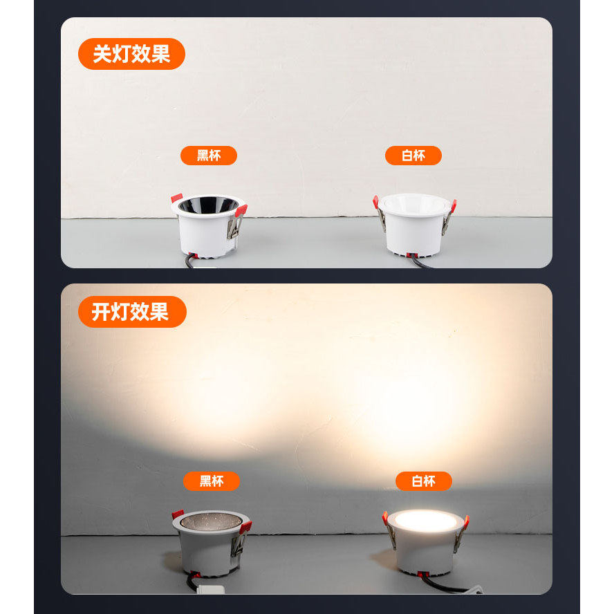 天超薄3CM开孔75mm嵌入式小山丘COB射灯可调深杯防眩窄边筒灯洗墙灯