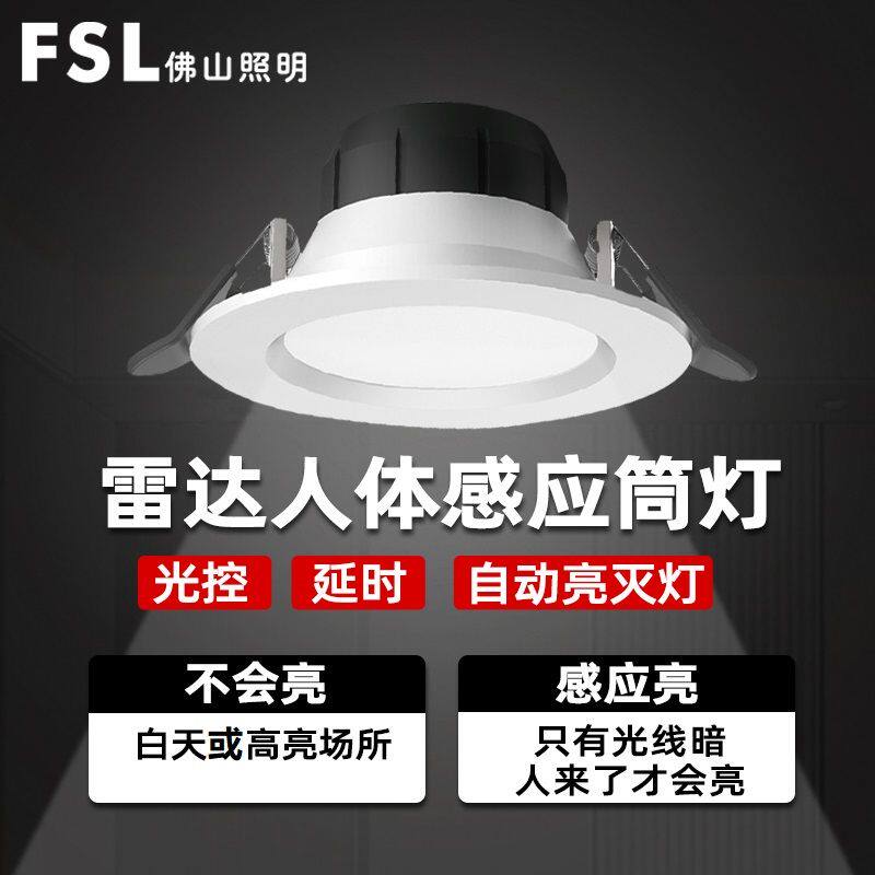 天猫fsl佛山照明旗舰店过道客厅微波感应防炫led天花板嵌入式筒灯