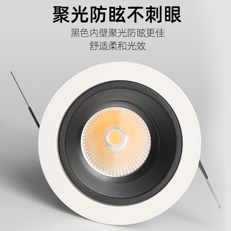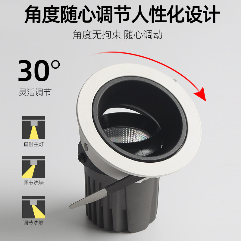 天超薄3CM开孔75mm嵌入式小山丘COB射灯可调深杯防眩窄边筒灯洗墙灯