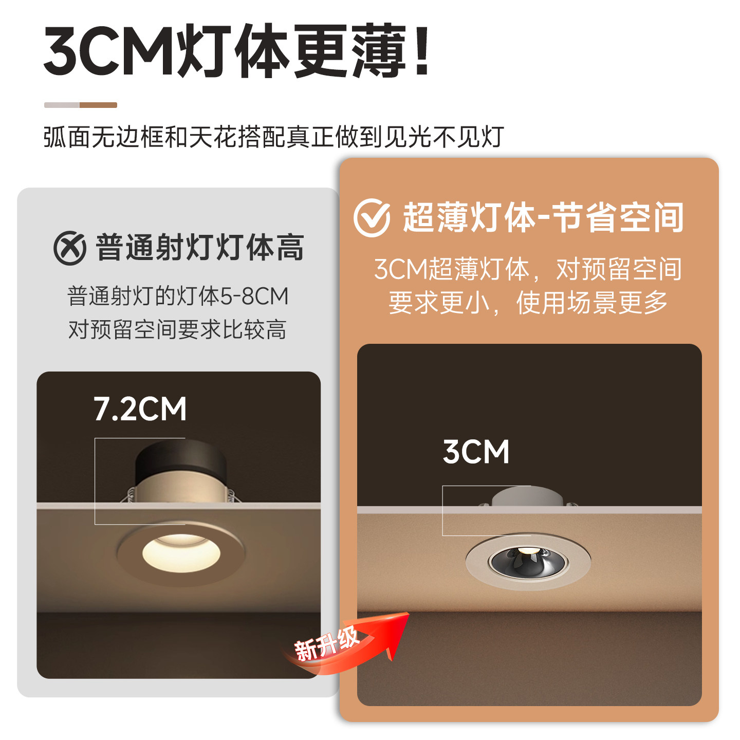 天超薄3CM开孔75mm嵌入式小山丘COB射灯可调深杯防眩窄边筒灯洗墙灯