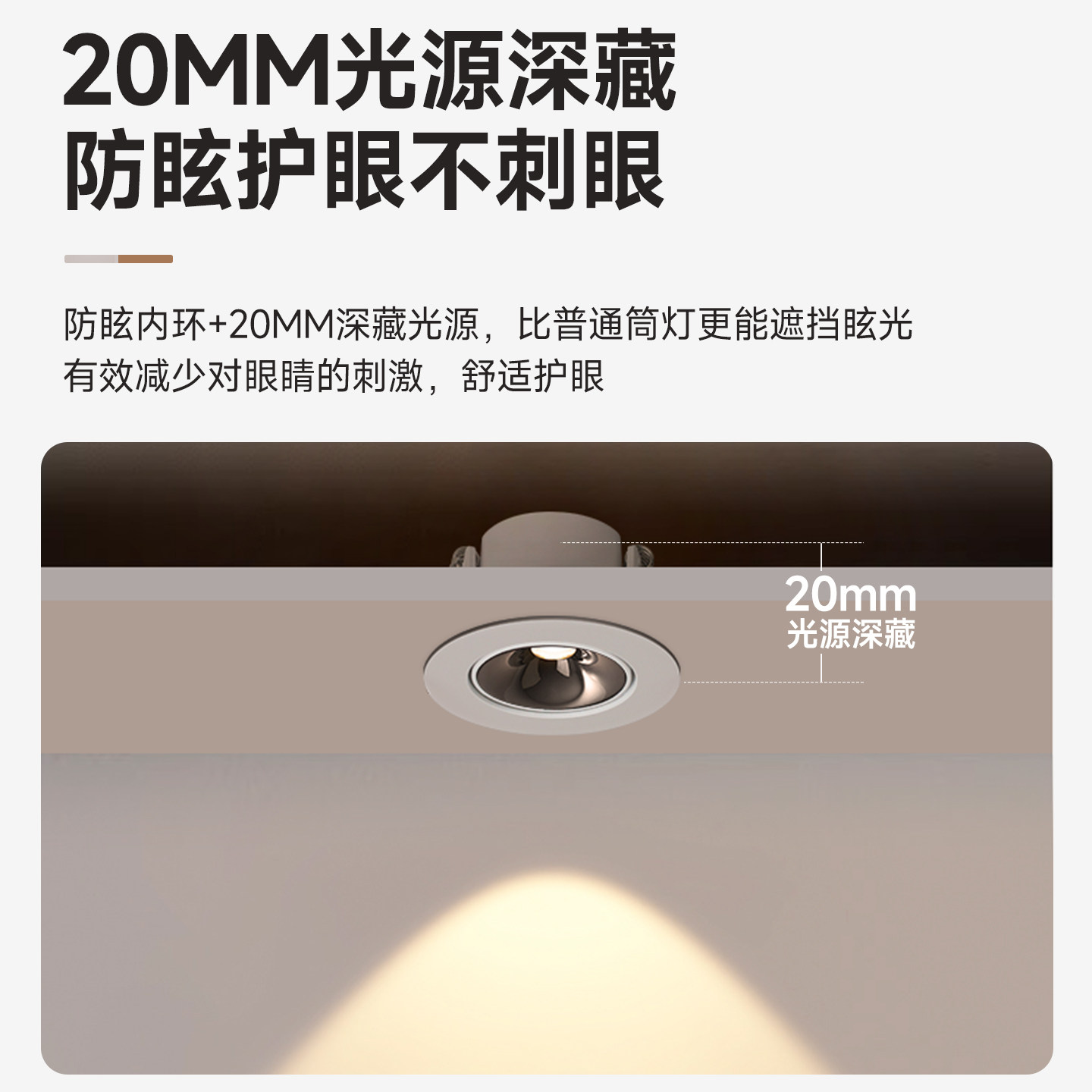 已接入米家APP智能深杯防眩筒灯全光谱Ra97铝材窄边嵌入式孔灯