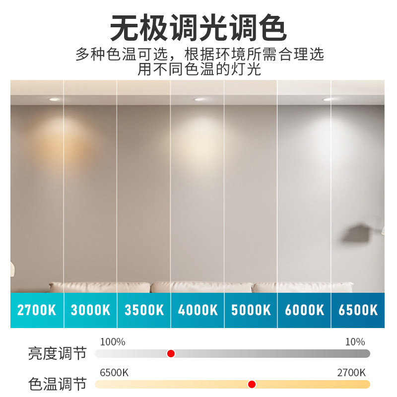 三色变光led筒灯开孔5 5.5 6 6.5 7 7.5 8 9 12公分嵌入式天花灯