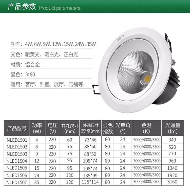 淘宝雷士照明LED射灯嵌入式COB铝材筒灯NLED1502 1503 1505 1506 1507