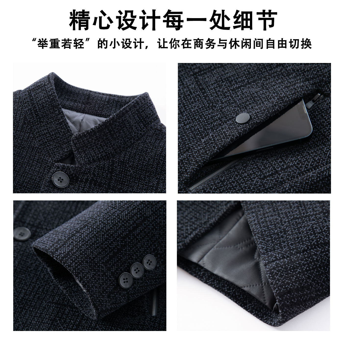 罗蒙中山装男士立领呢子外套,是一款融合传统中式美学与现代剪裁的秋冬保暖夹克。采用优质加厚毛呢面料,挺括有型,保暖性强,适合寒冷季节穿着。立领设计经典大气,彰显沉稳儒雅的男士气质,兼具中山装的庄重与西服的利落。精细做工,走线工整,细节考究,穿着舒适且富有质感。无论是日常通勤、商务休闲,还是节日聚会,都能展现成熟男士的稳重与品味。罗蒙品牌匠心打造,是父亲节、生日或冬季馈赠长辈的理想选择,既实用又饱含心意。