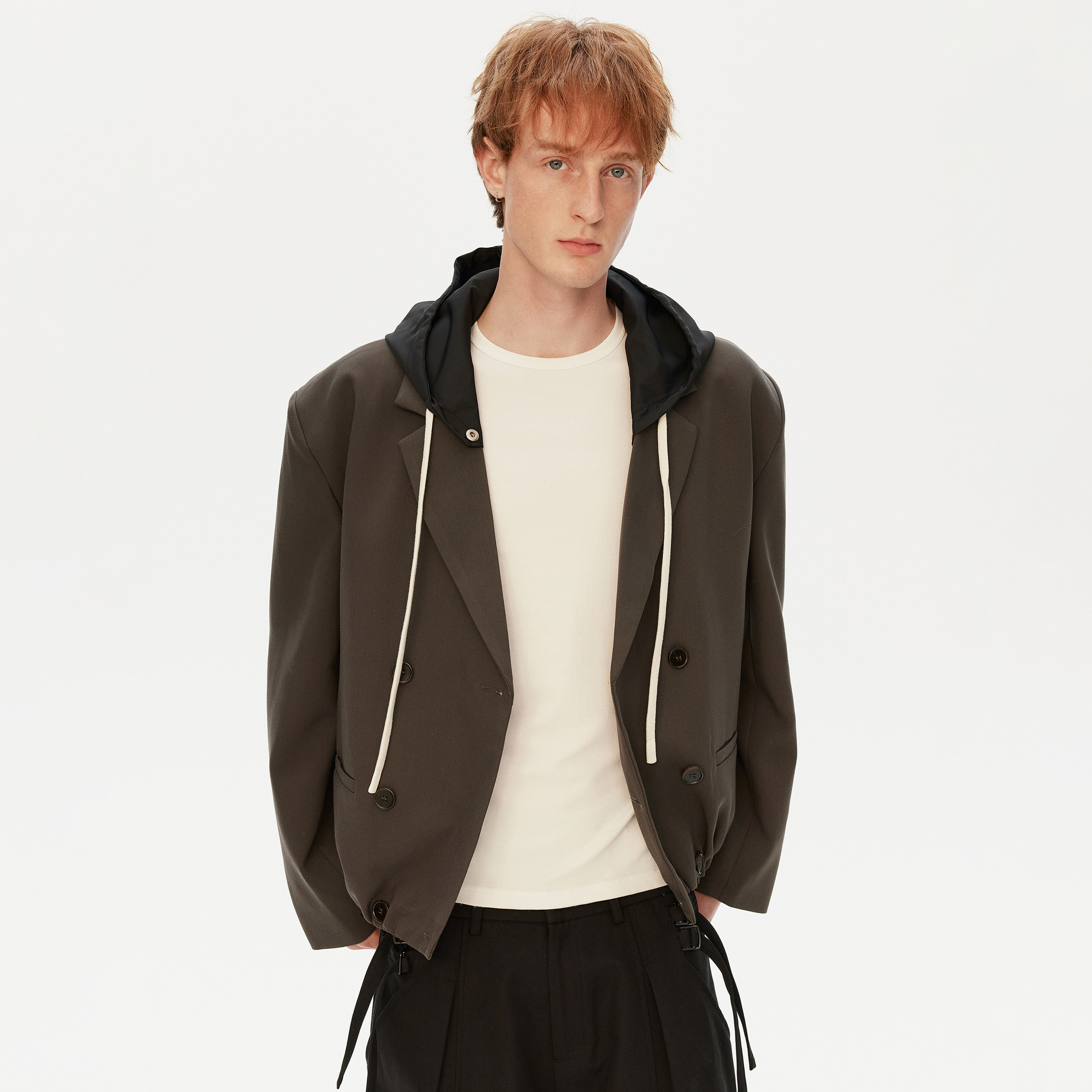 其特点在于可拆卸的连帽设计,让外套更具时尚感和灵活性。男女均可穿着,宽松休闲的剪裁适合不同身材的人群。此外,外套的精致细节和高级感的材质,让人气质倍增。适合多种场合穿着,无论是休闲出行还是正式聚会,都能展现出独特的魅力。