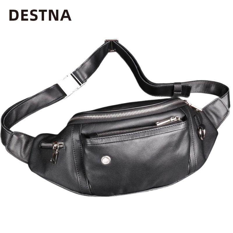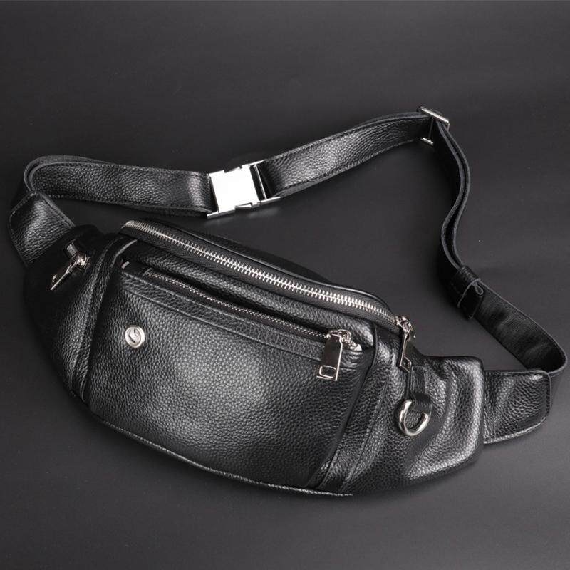 淘男士真皮腰包中年质感多功能头层牛皮休闲斜跨胸包大容量收银腰包