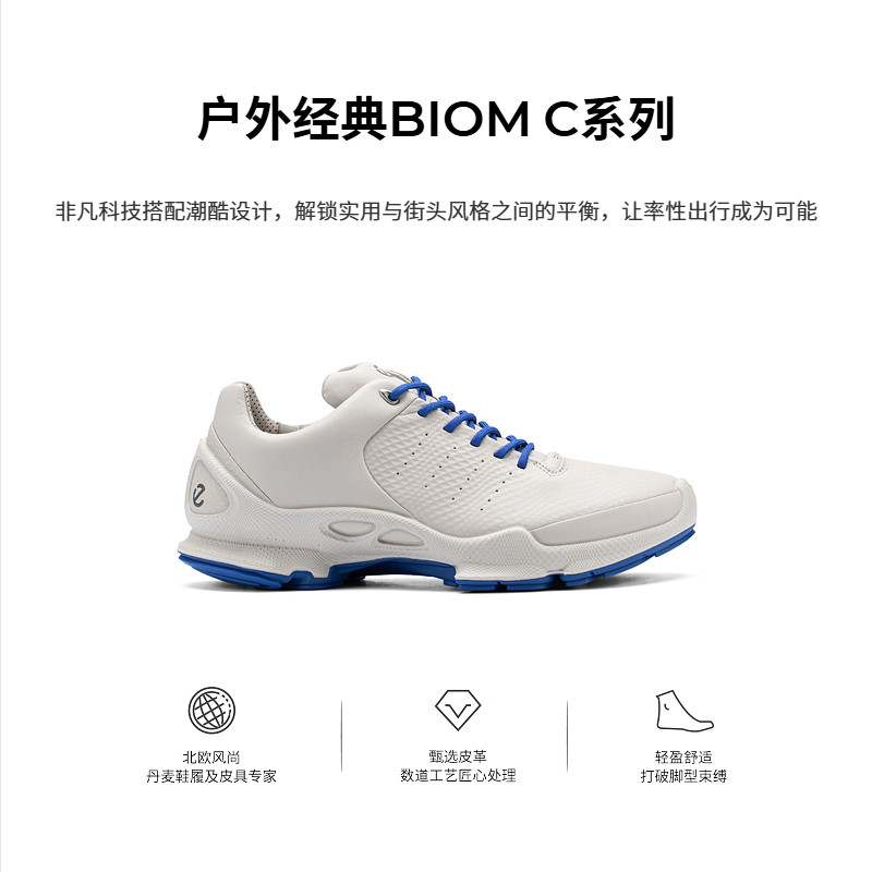 天猫ECCO爱步运动鞋男 春夏双色鞋带透气舒适跑步鞋 健步BIOMC800434