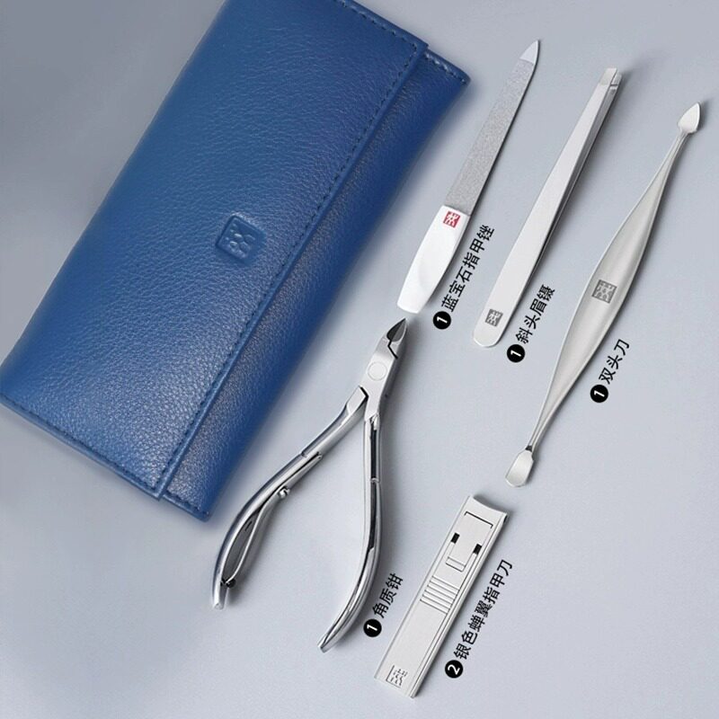 天德国双立人指甲刀套装指甲剪指甲钳进口原装修甲工具软牛皮五件套