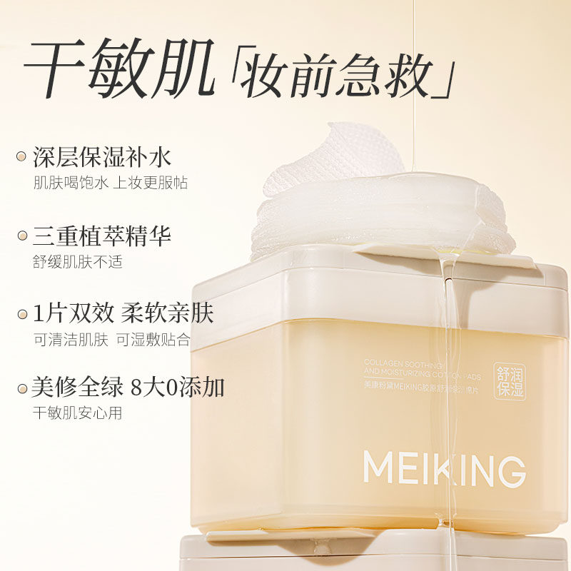 美康粉黛湿敷专用棉片补水舒缓熬夜面膜,专为熬夜肌与干燥肌设计,采用优质亲肤棉片,柔软贴合面部轮廓,提升精华吸收效率。罐装设计卫生便捷,内含高浓度保湿精华,蕴含多重植物精粹,深层补水、舒缓修护,有效缓解肌肤暗沉与干燥紧绷。每次湿敷3-5分钟,即可令肌肤迅速恢复水润透亮,适合日常护理或妆前急救使用。正品官方出品,品质保障,温和无刺激,适合多种肤质。坚持使用,帮助改善熬夜带来的肌肤问题,重现健康光泽,是居家护肤的理想之选。