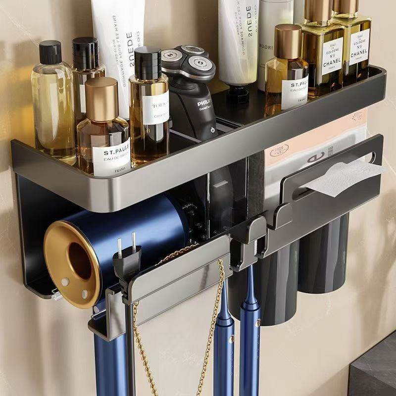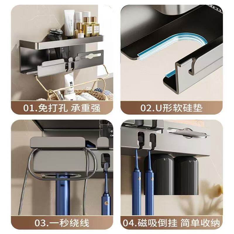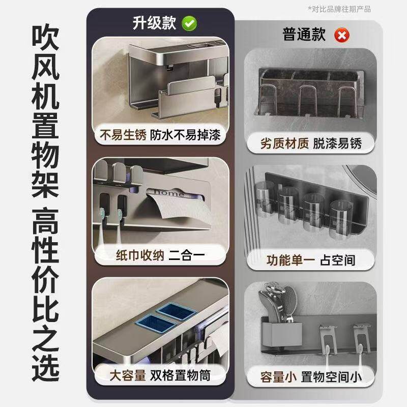 淘宝卫生间牙刷置物架刷牙壁挂式纸巾吹风机三合一体多功能浴室收纳架