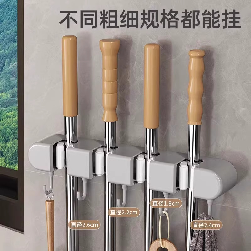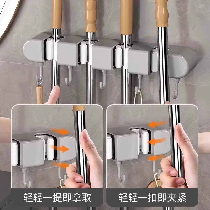 天猫家用免打孔多功能拖把架收纳架壁挂置物卡扣固定强力浴室防滑