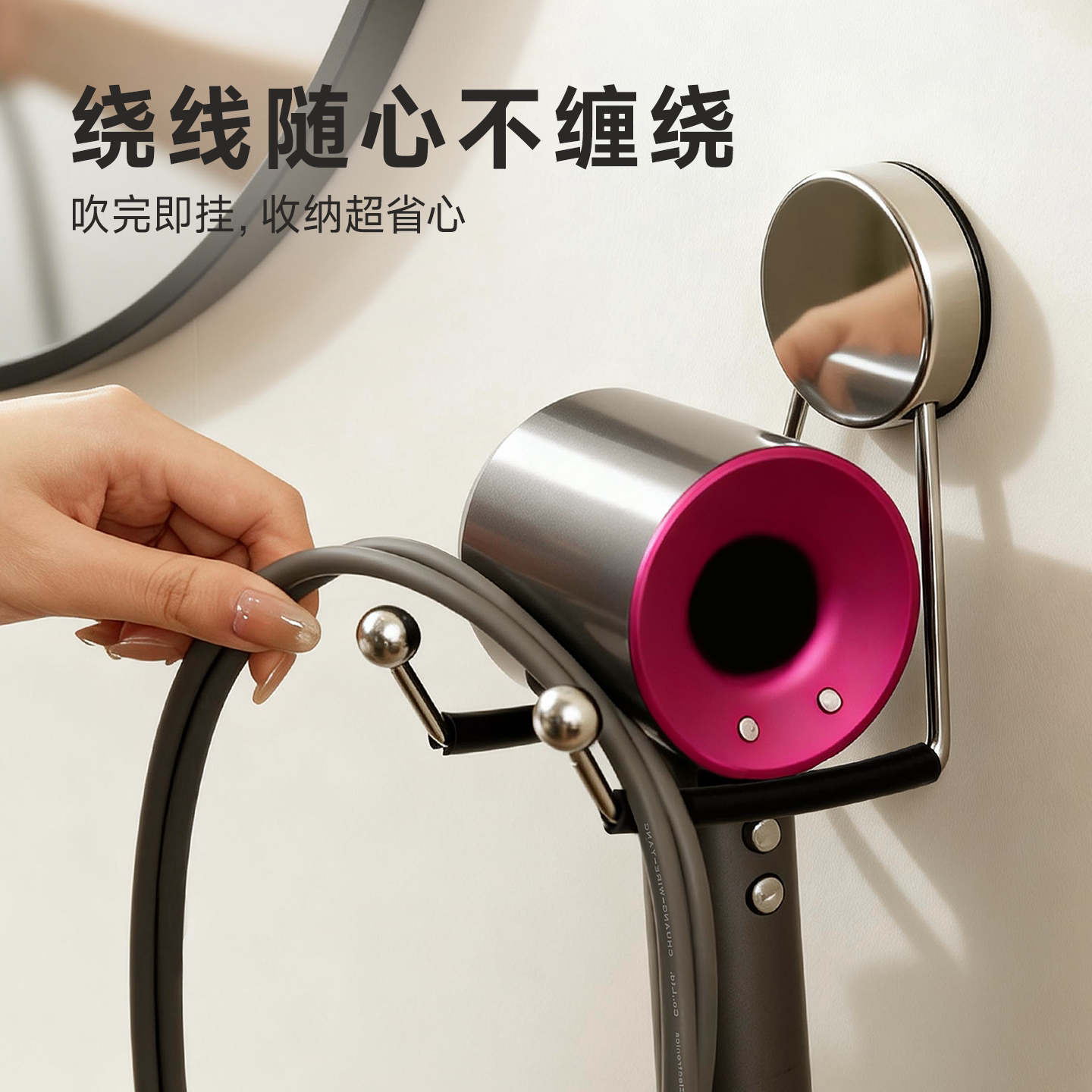 淘电吹风机置物架免打孔卫生间壁挂绕线支架浴室戴森吹风筒收纳神器