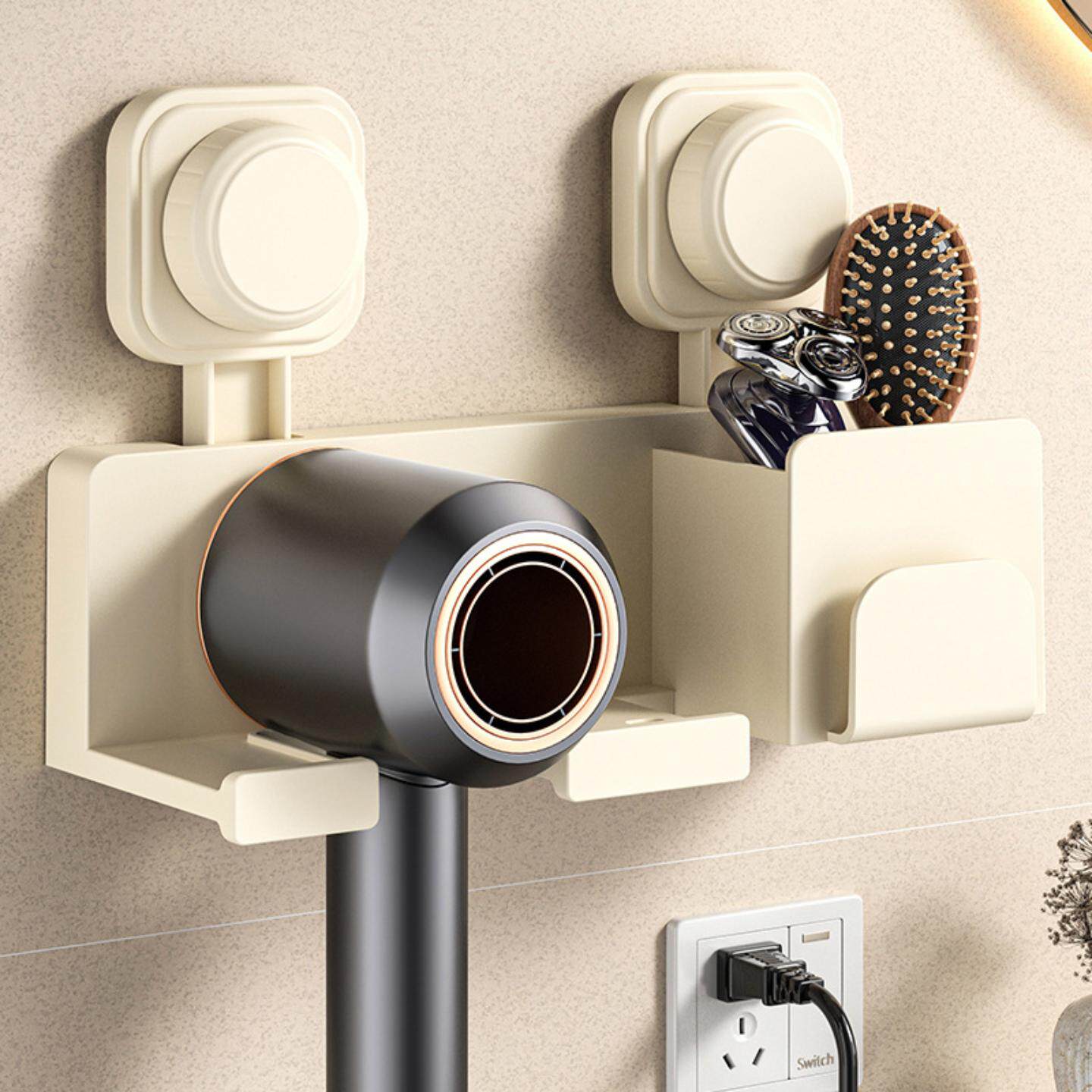 奶油风吹风机置物架子免打孔卫生间浴室电吹风挂架放置架风筒支架