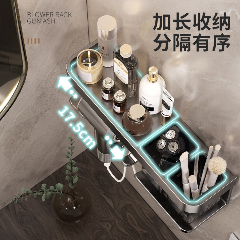 太空铝卫生间电吹风机支架老式风筒收纳架子壁挂浴室置物架免打孔