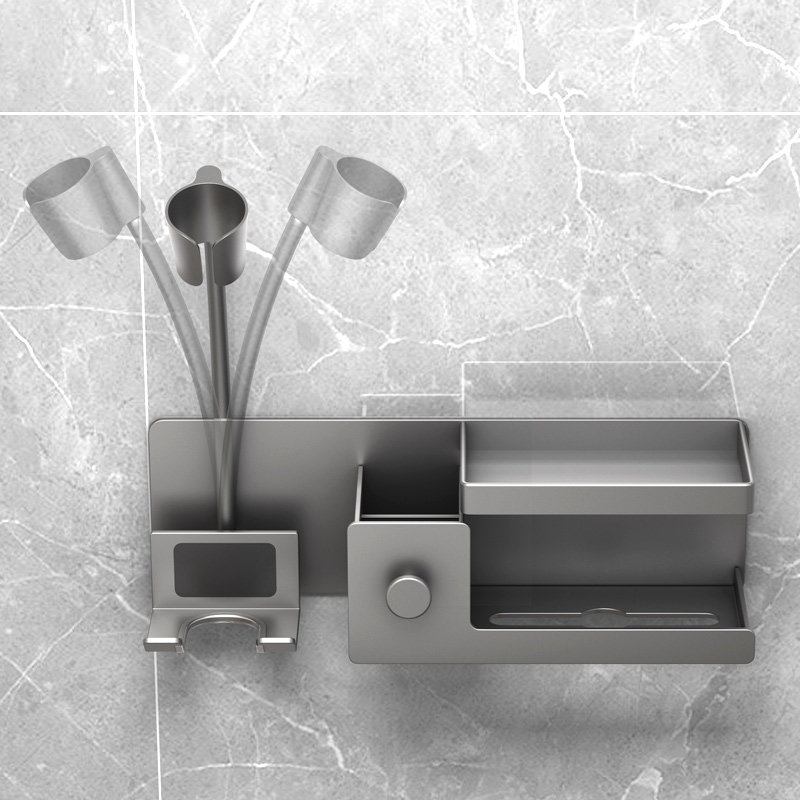 吹风机置物架免打孔卫生间电吹风挂架太空铝枪灰支架浴室收纳架子