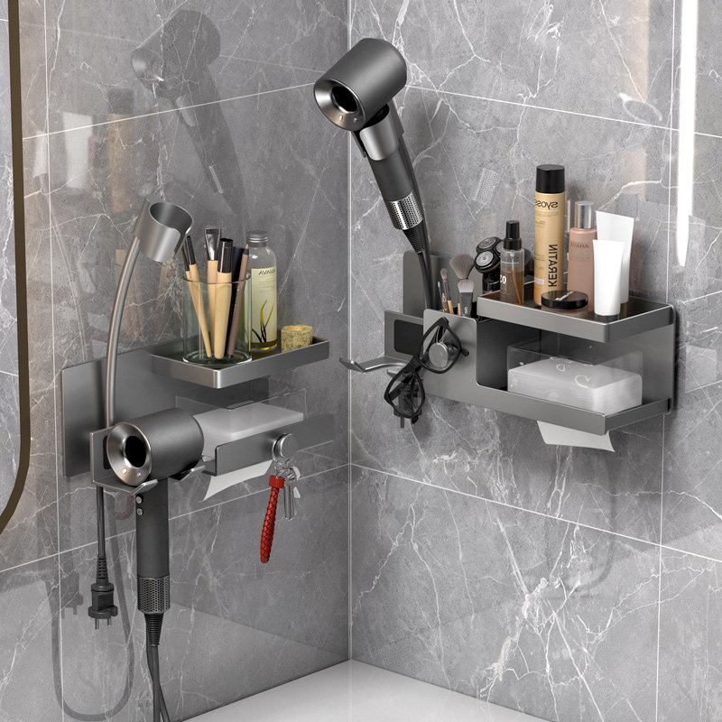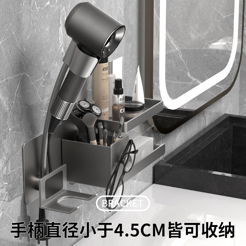 天吹风机置物架免打孔卫生间电吹风挂架太空铝枪灰支架浴室收纳架子