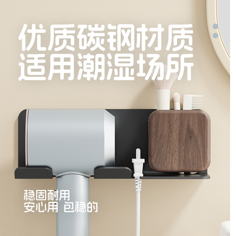 天猫胡桃木吹风机置物架免打孔卫生间电吹风支架壁挂浴室风筒收纳架子
