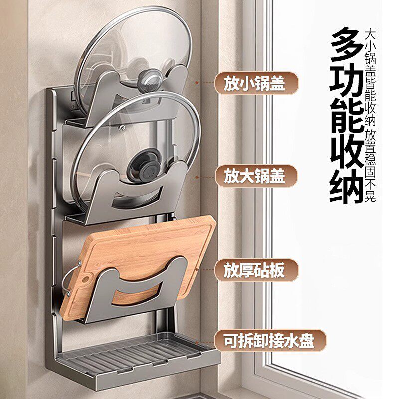 淘宝厨房锅盖架壁挂式免打孔家用厨房置物架菜板案板台面收纳神器