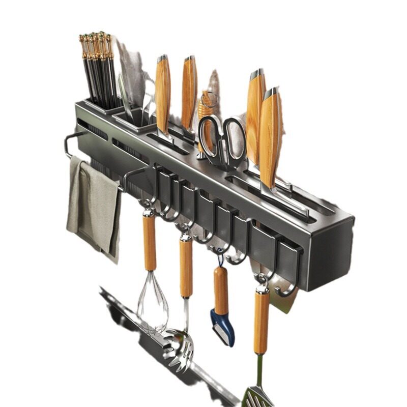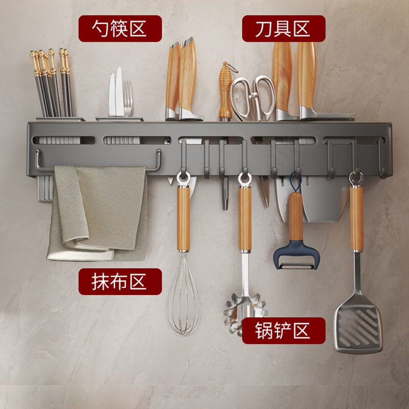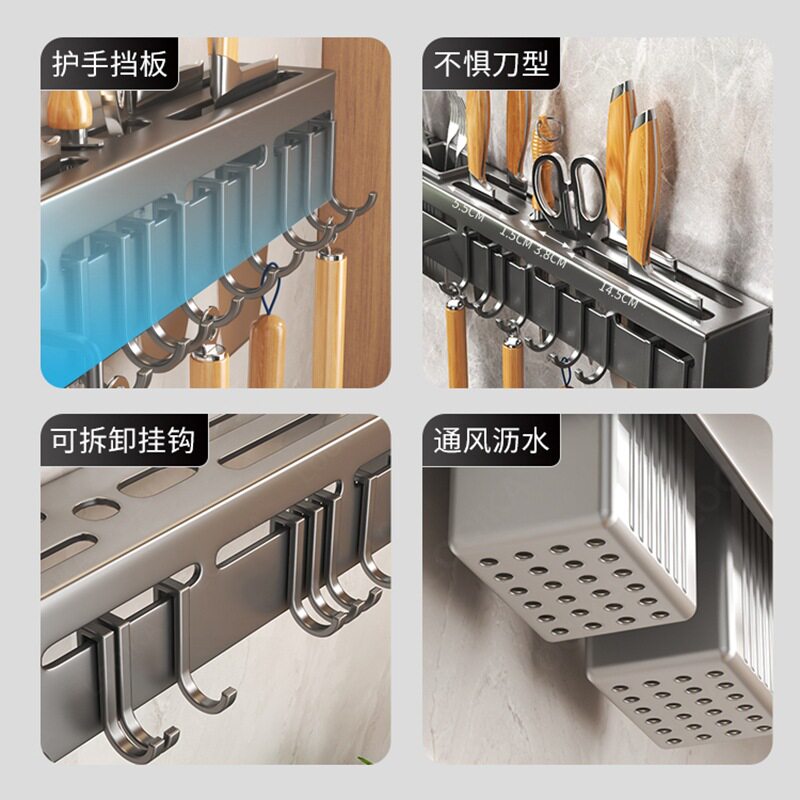 淘宝不锈钢免打孔厨房刀架置物架多功能挂架壁挂筷筒刀具一体收纳架