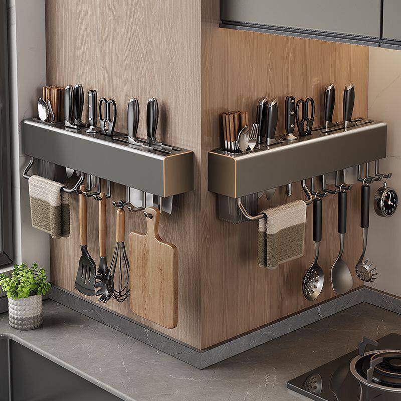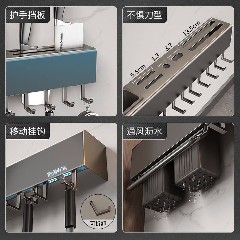 淘宝刀架筷笼一体厨房多功能置物架免打孔不锈钢厨具刀具收纳架壁挂式