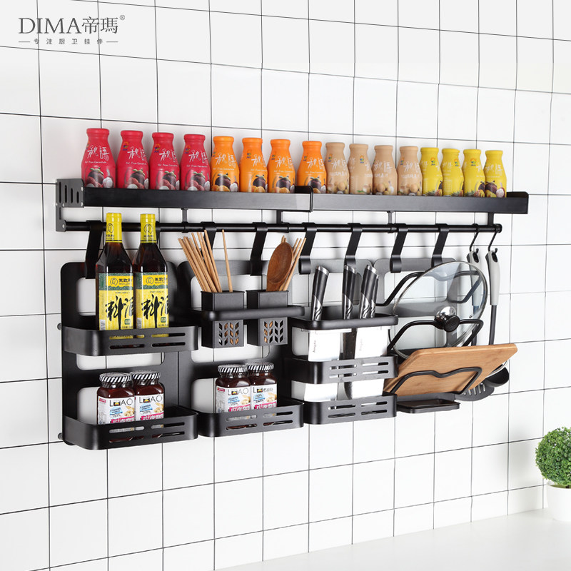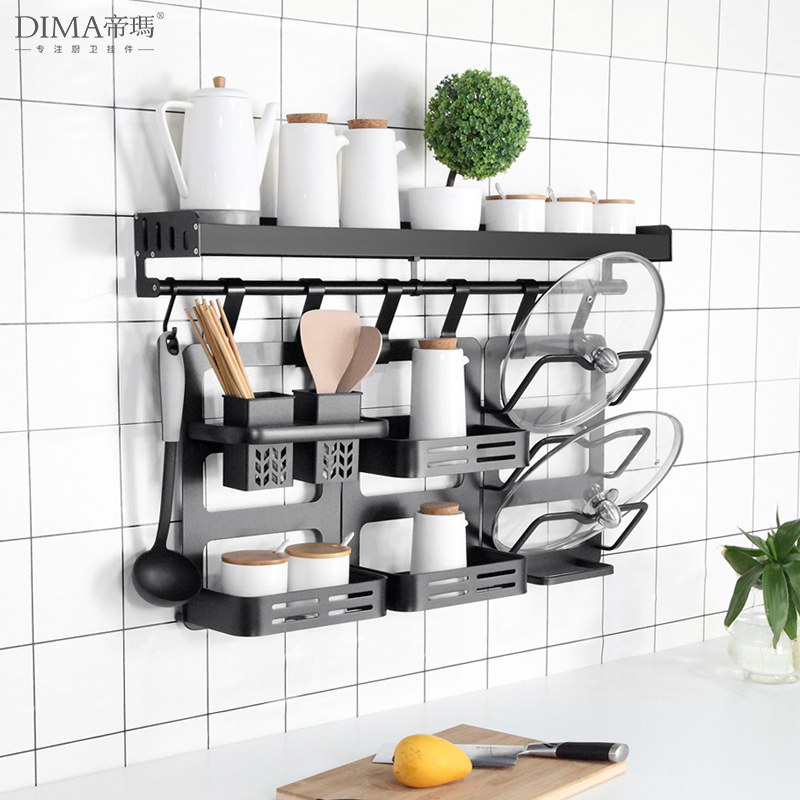 淘宝黑色厨房置物架调味架q挂架免打孔厨卫挂件刀架调味料锅盖架壁挂