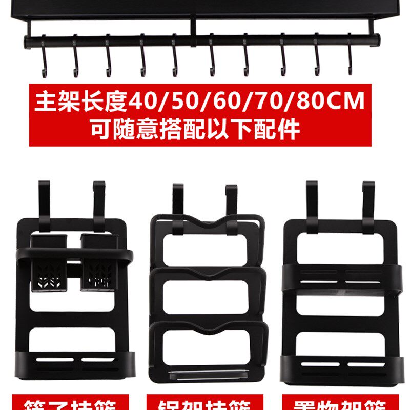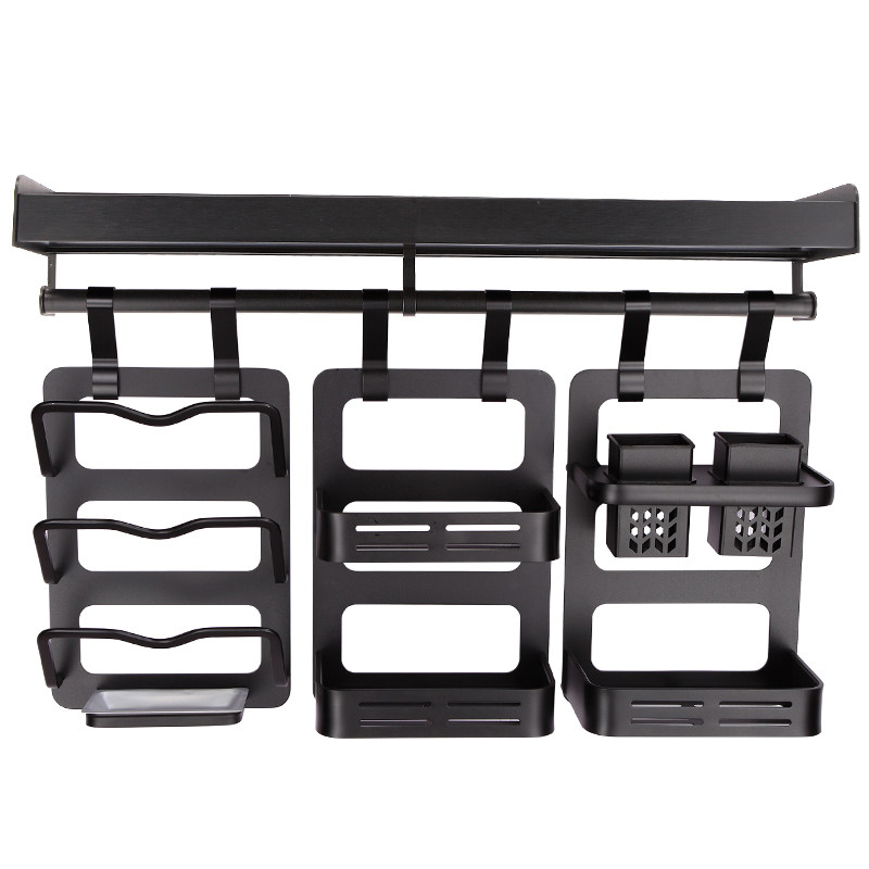 淘宝黑色厨房置物架调味架挂架免打孔厨卫挂件刀架调味V料锅盖架壁挂