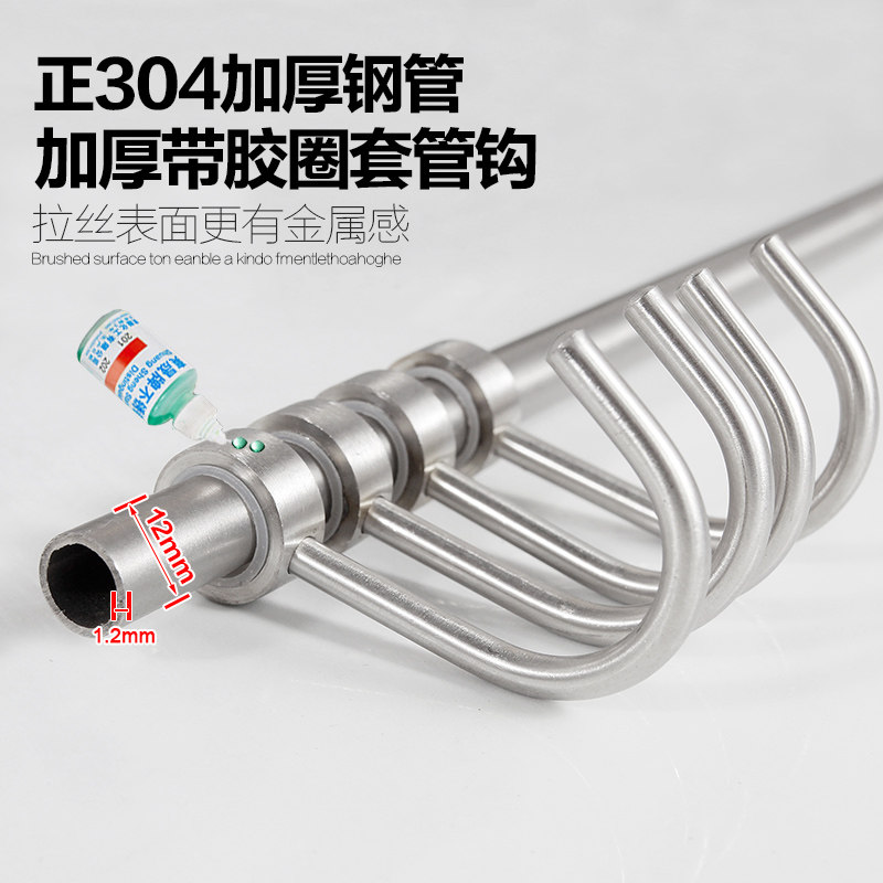 淘宝12mm高档加厚定制厨房挂杆不锈钢304壁挂活动挂钩挂件收纳置物架