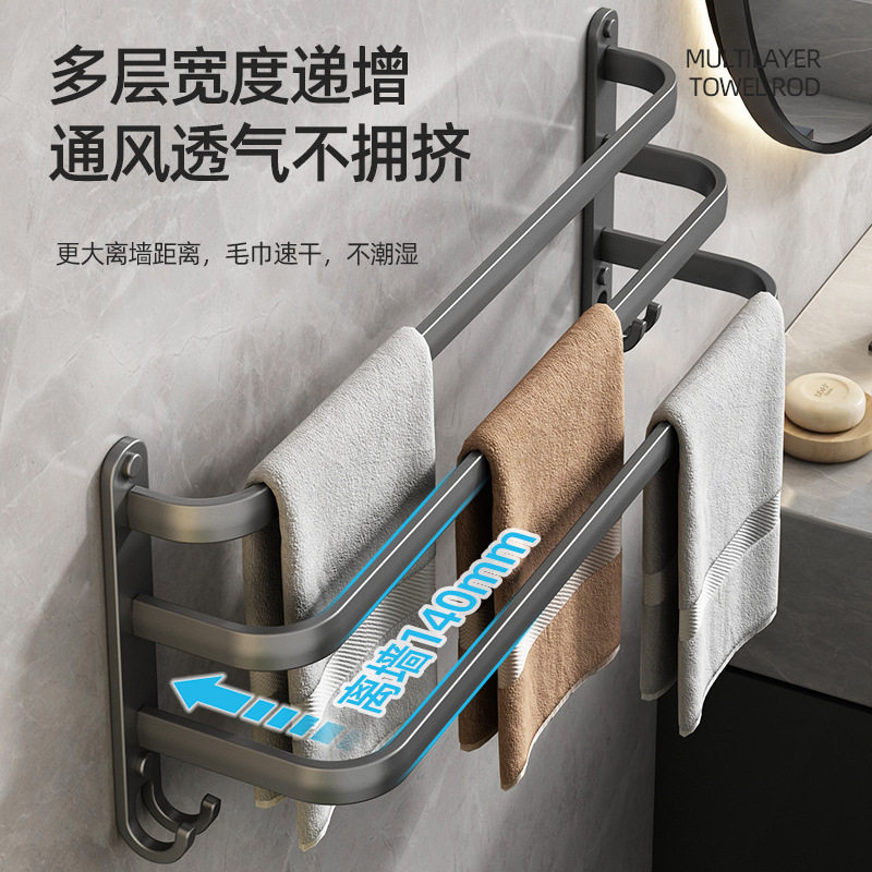 淘宝厂家供应浴室太空铝免打孔壁挂式置物架 毛巾架 厨卫挂件单杆挂杆