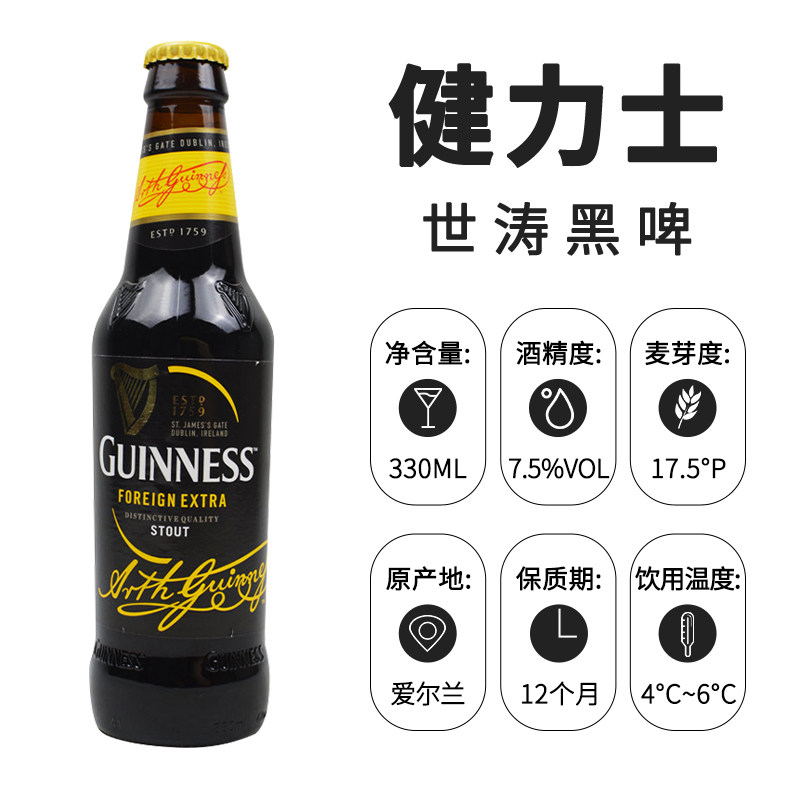 淘宝爱尔兰原装进口健力士黑啤酒330ml*24瓶装整箱世涛精酿