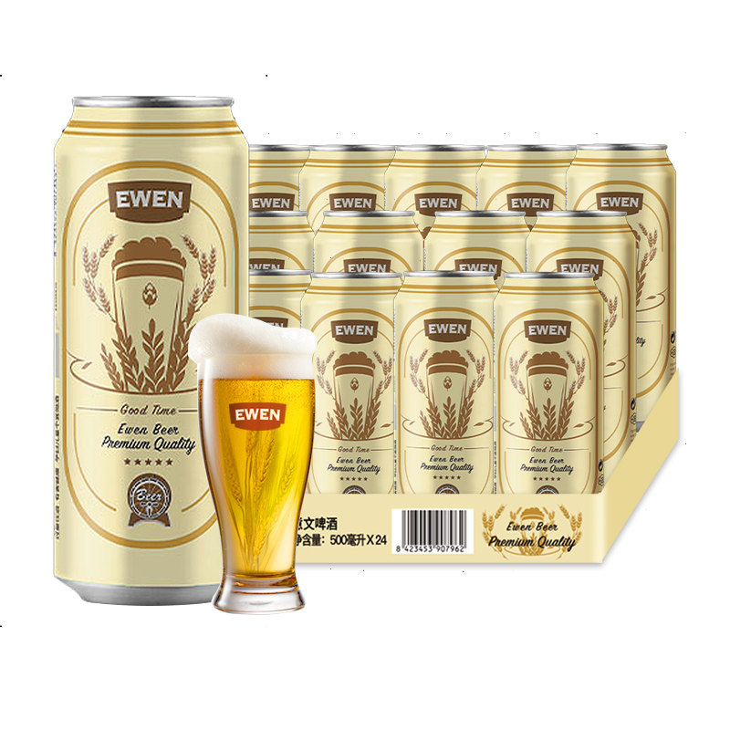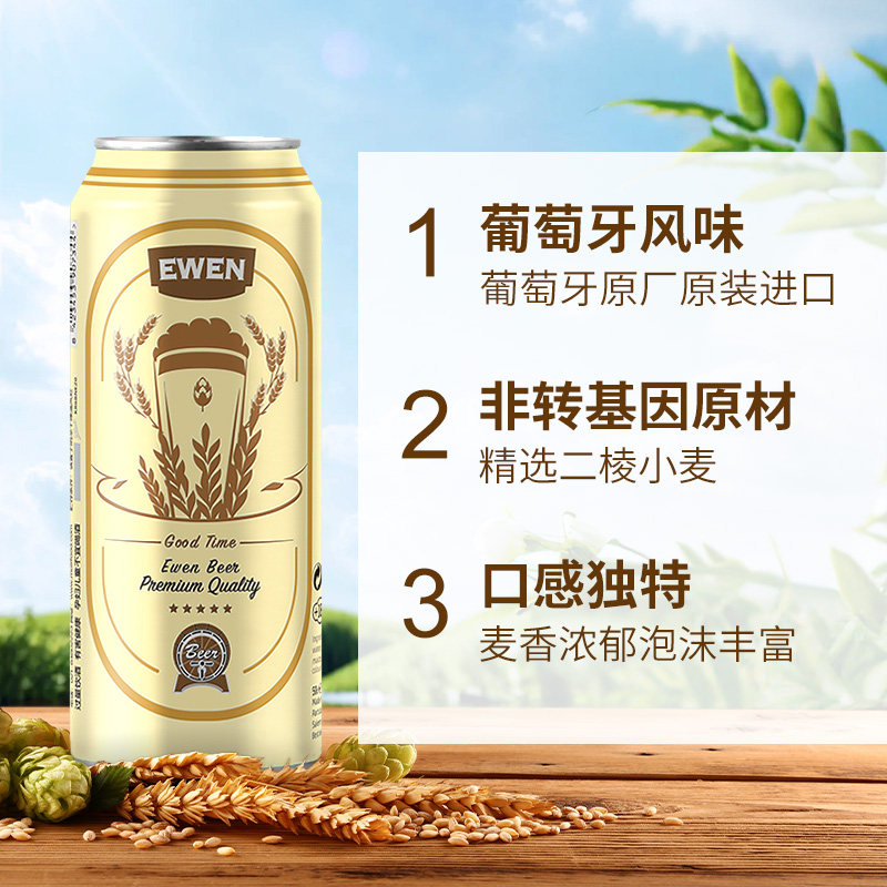 天猫EWEN意文啤酒葡萄牙原装进口拉格啤酒黄啤500ml*24罐整箱啤酒进口