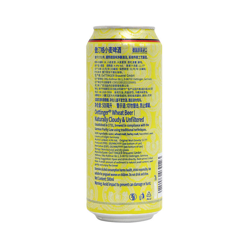 天猫德国傲汀格小麦啤酒500ml*6罐 OETTINGER原装进口罐装