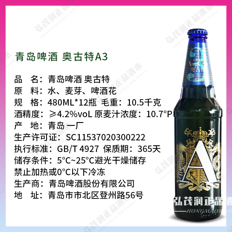 「青岛直邮」青岛啤酒奥古特系列A3全麦啤酒,精选优质全麦原料,传承百年德式酿造工艺,酒体醇厚、麦香浓郁,口感顺滑细腻,层次丰富。480ml大容量瓶装,12瓶整箱装,适合家庭聚餐、朋友派对或自享畅饮。奥古特作为青岛啤酒高端系列,以独特酵母配方与低温长时间发酵技术,成就其卓越品质与经典风味。金黄酒液清澈透亮,泡沫绵密持久,入口微苦回甘,余韵悠长。青岛直邮保障新鲜直达,锁住原汁原味。无论是佐餐还是独酌,A3全麦啤酒都带来高品质德式精酿体验,是品味与格调的象征。
