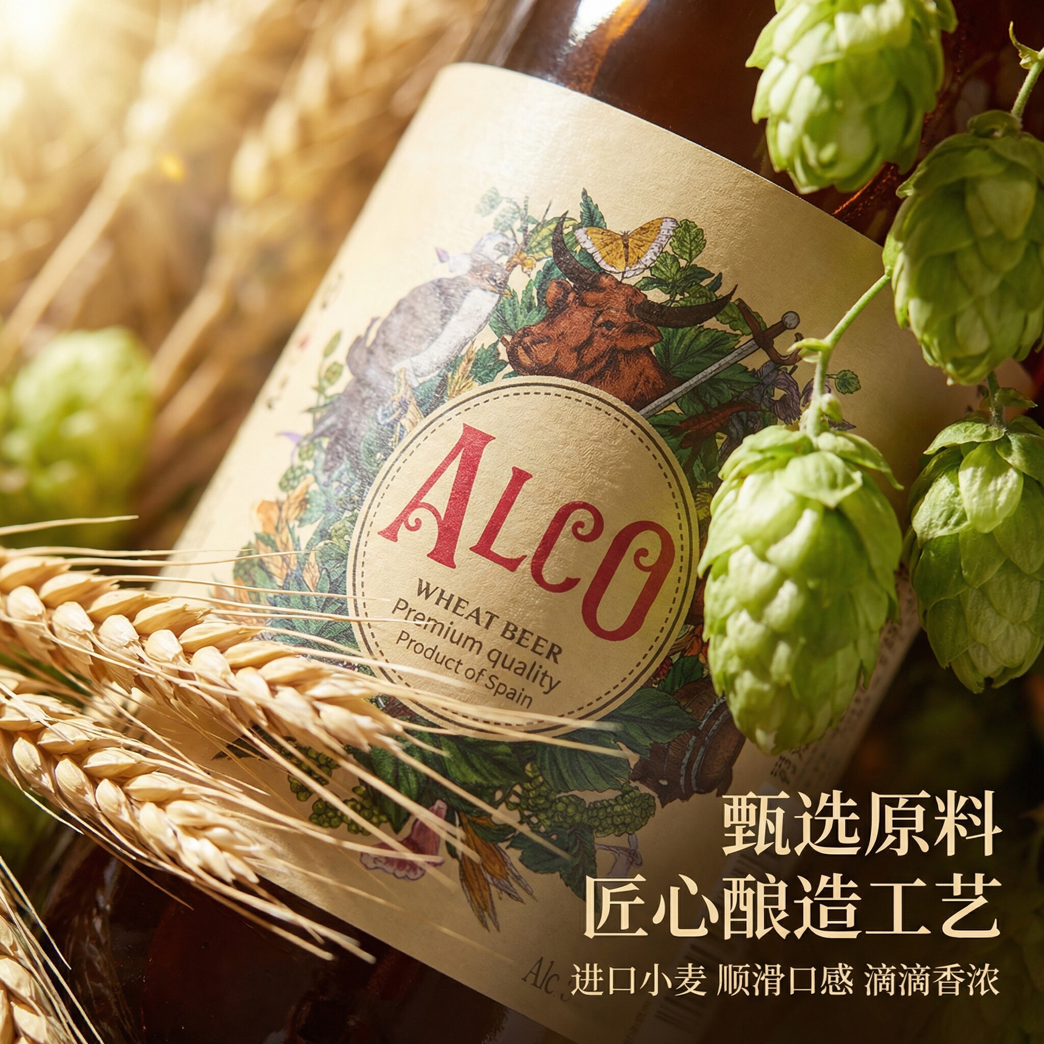 天猫【进口】阿尔寇小麦啤酒1L*6瓶装西班牙精酿原浆白啤啤整箱