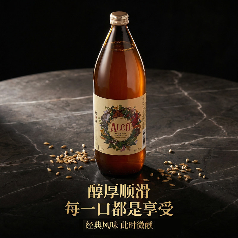 【进口】阿尔寇小麦啤酒1L×6瓶装,源自西班牙精酿工艺,采用优质大麦芽、小麦及天然酵母,经传统上层发酵工艺精心酿造,保留原浆风味。酒体呈淡金色,泡沫细腻绵密,散发清新的柑橘与丁香香气,口感顺滑微酸,麦香浓郁,余味清爽宜人。无过滤工艺保留更多活性成分,营养丰富。大容量1L装设计,适合聚会分享或自饮畅饮。整箱6瓶装,性价比出众,是追求品质与风味的精酿爱好者理想之选。无论是搭配轻食、海鲜,还是纯饮,皆能带来纯正欧式白啤体验。