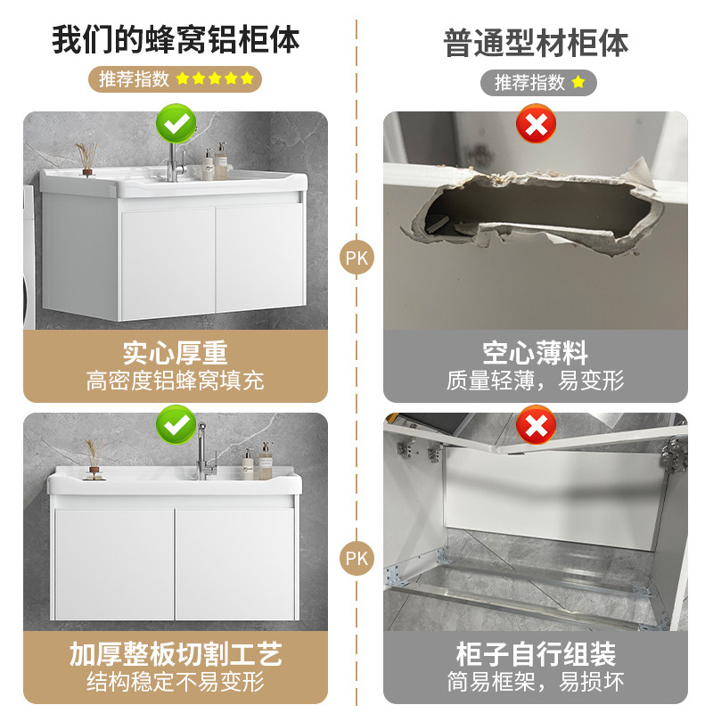卫生间洗脸盆柜组合蜂窝铝浴室柜一体陶瓷挂墙式洗漱台阳台洗手盆